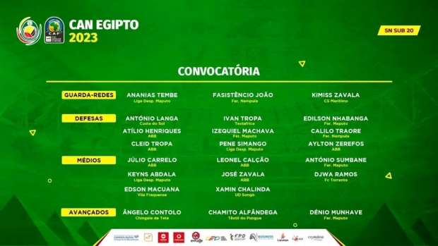 تشكيل منتخب موزمبيق للشباب ضد مصر