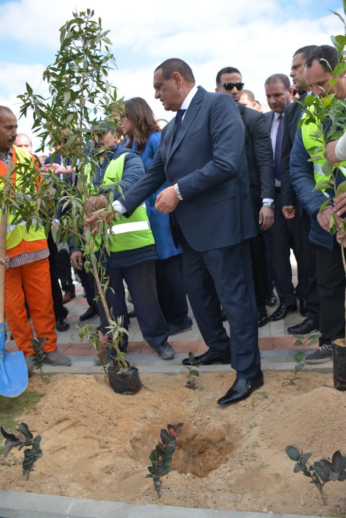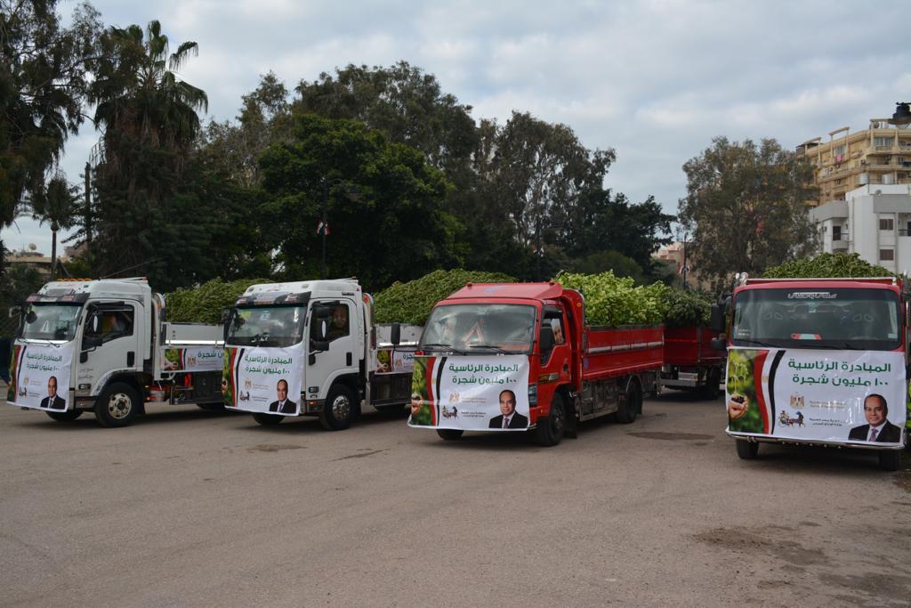 وزيرا التنمية المحلية والتعليم يشهدان اصطفاف 45 سيارة تضم 130 ألف شجرة بالبحيرة