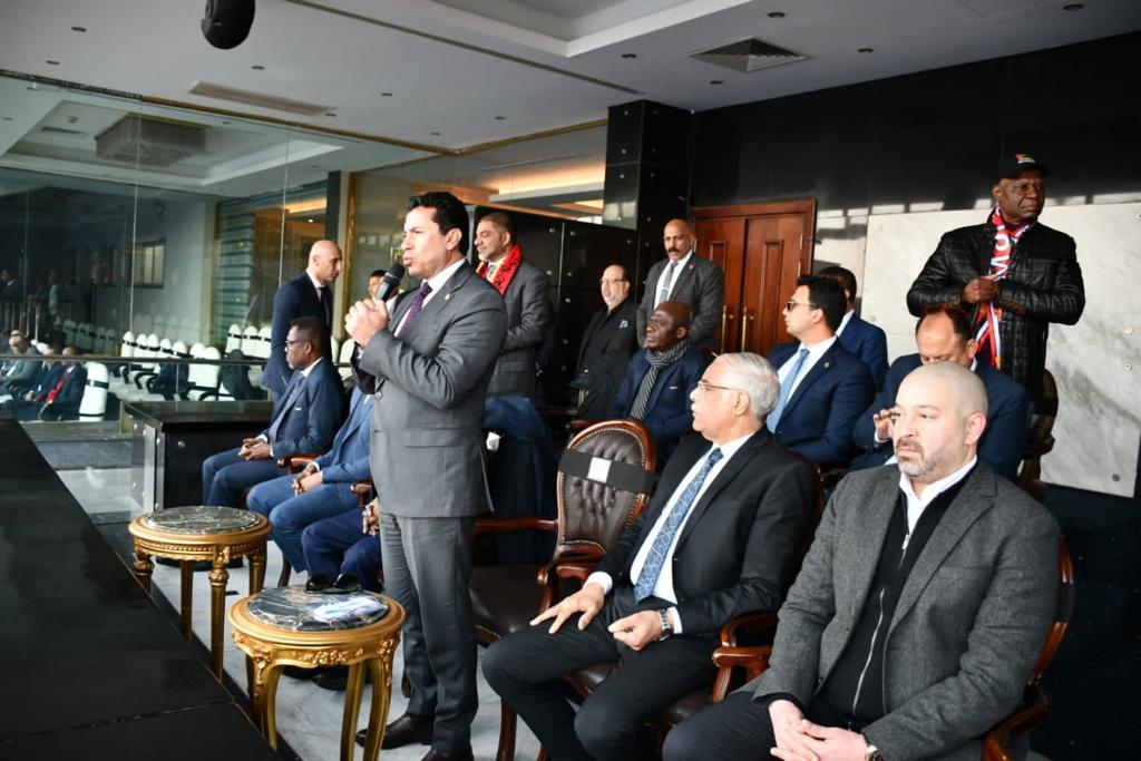 وفي كلمته، أعرب وزير الشباب والرياضة عن سعادته باستضافة مصر لبطولة الأمم الأفريقية لكرة القدم للشباب مواليد 2003، مرحبا بجميع أعضاء الاتحاد الإفريقي من المكتب التنفيذي، والمنتخبات المشاركة والوفود المرافقة لهم خلال تواجدهم ببلدهم الثانى مصر.