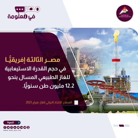 نشر مركز المعلومات ودعم اتخاذ القرار مجلس الوزراء، إنفوجرافا سلط الضوء من خلاله على أن مصر ضمن واحدة من أهم منتجي الغاز الطبيعي المسال في القارة الإفريقية.