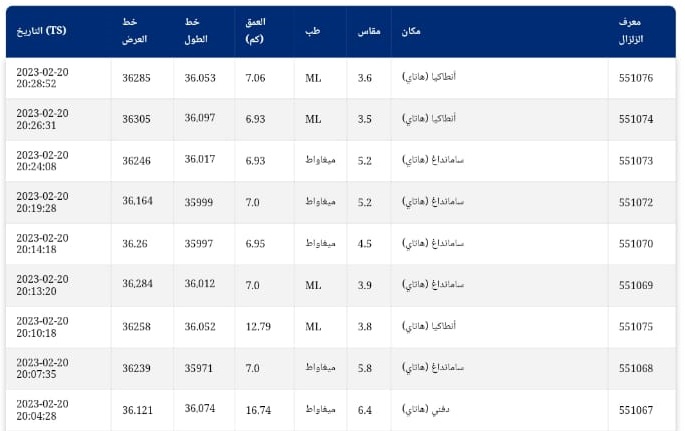 ووقعت الهزات الارتدادية كلها في مدينة هاطاي التركية الحدودية مع سوريا، وكان أقواها 5.8 درجة، ثم هزتين بقوة 5.2 درجة على مقياس ريختر.