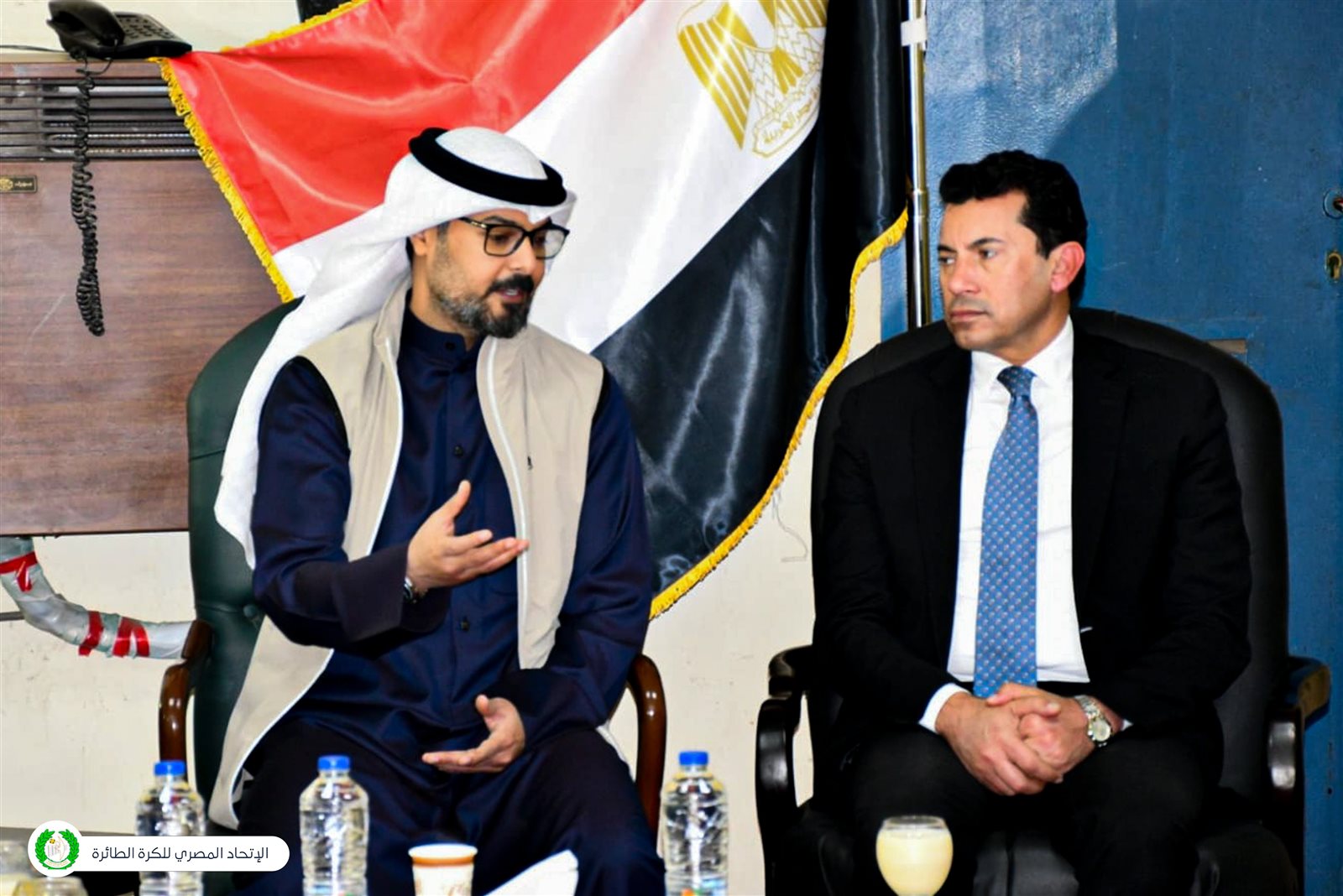 وزير الشباب والرياضة يلتقي رئيس الاتحاد العربي للكرة الطائرة قبل افتتاح البطولة العربية| صور