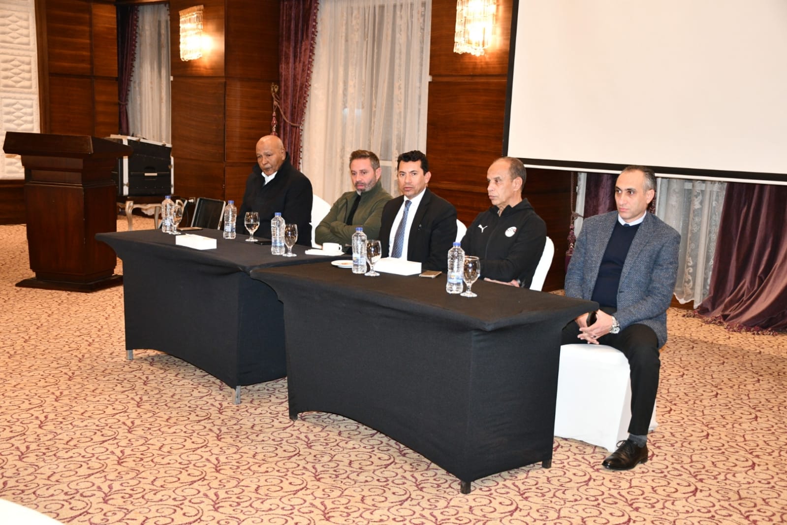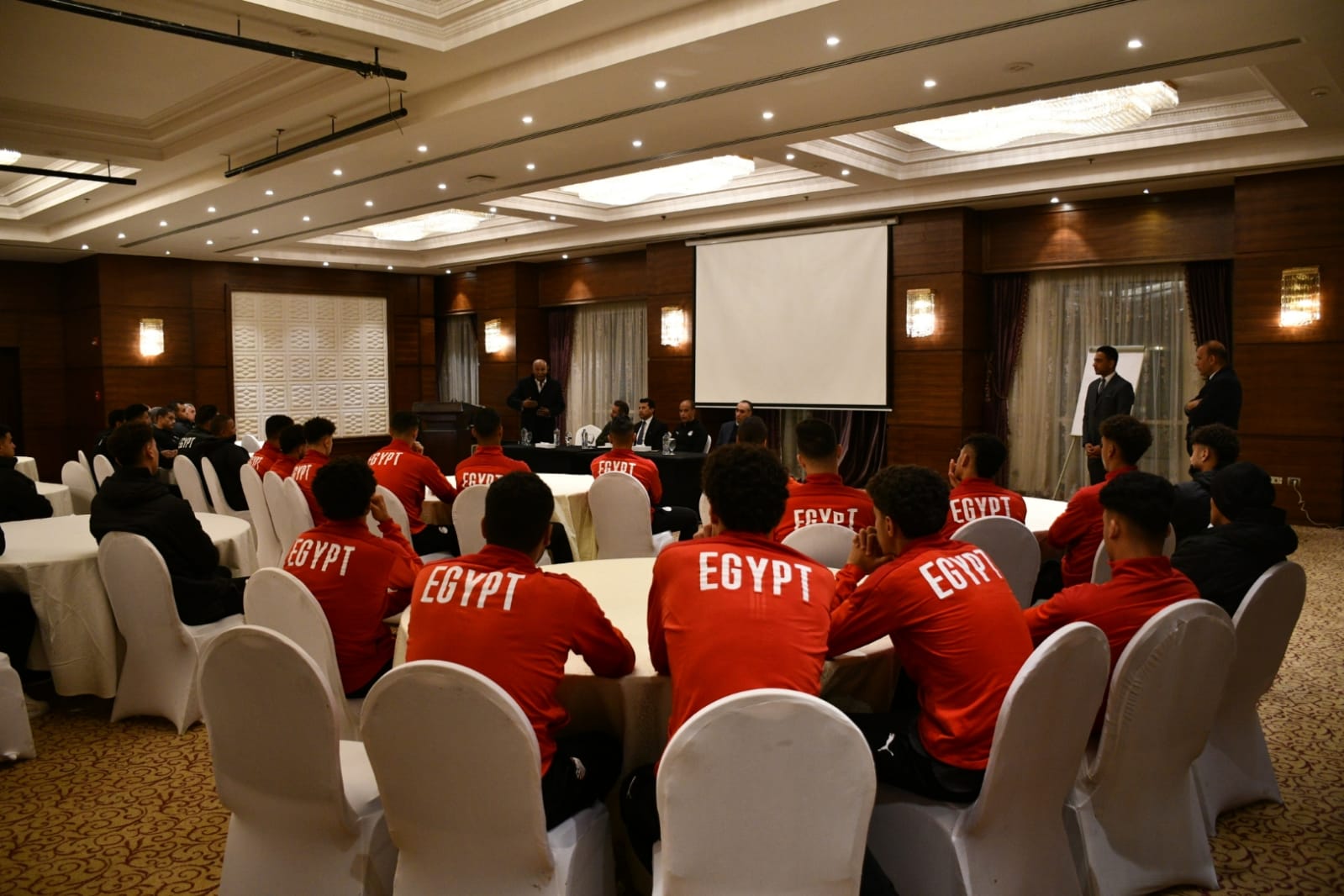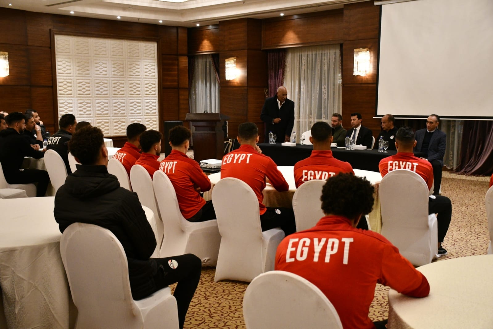 وحضر اللقاء، محمود جابر المدير الفني للمنتخب والجهاز الفني والإداري للفريق، وأعضاء الاتحاد المصري لكرة القدم اللواء حلمي مشهور وحازم إمام، بالإضافة إلى الدكتور محمد الكردي رئيس الإدارة المركزية للأداء الرياضي بوزارة الشباب والرياضة.