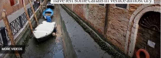 بدأت بحيرات مدينة فينيسيا الإيطالية الأكثر شهرة حول العالم بجمالها الخلاب، في الجفاف والنضوب، كما أصبحت المراكب والسفن تفقد القدرة على التجول بصورة طبيعية.