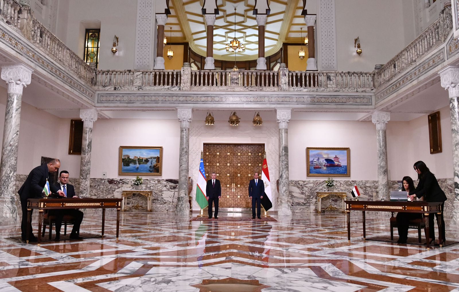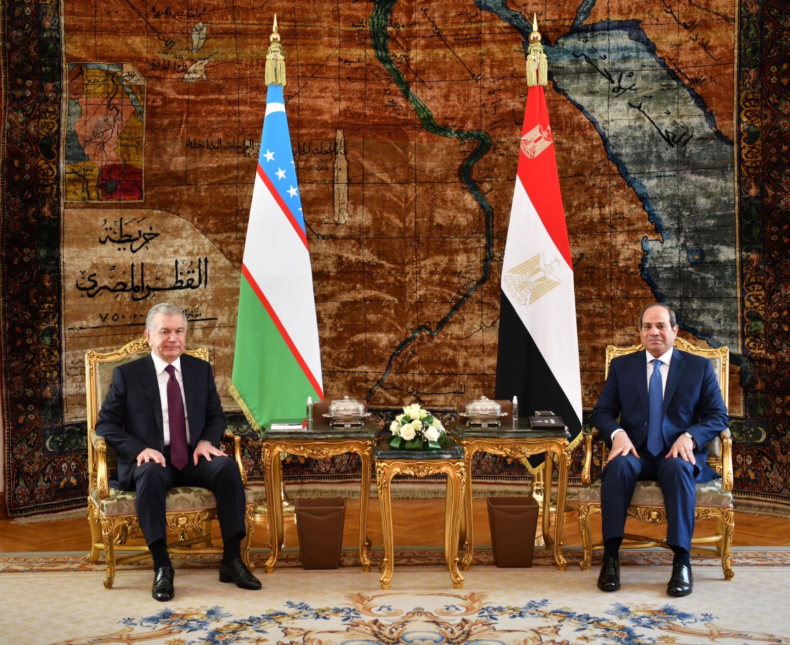 وأشاد رئيس جمهورية أوزبكستان بالجهود التي يبذلها رئيس جمهورية مصر العربية لإحلال السلام والاستقرار في منطقة الشرق الأوسط، حيث عَقَد الرئيسان مباحثات في أجواء من الثقة والتفاهم، حيث تمّ تبادل وجهات النظر حول القضايا الثنائية والإقليمية والدولية ذات الاهتمام المشترك، وأعربا عن تقديرهما للتعاون بين الجانبين على المستوى الثنائي، وفي المحافل الدولية.