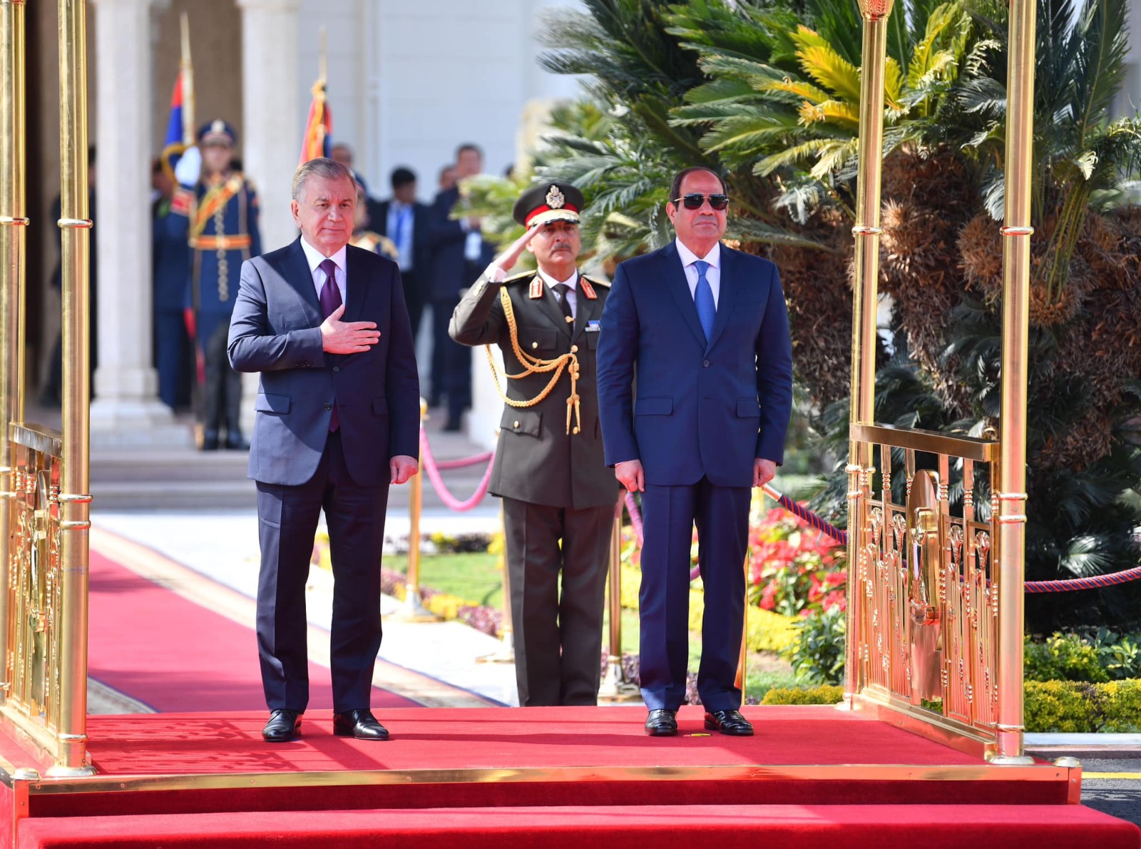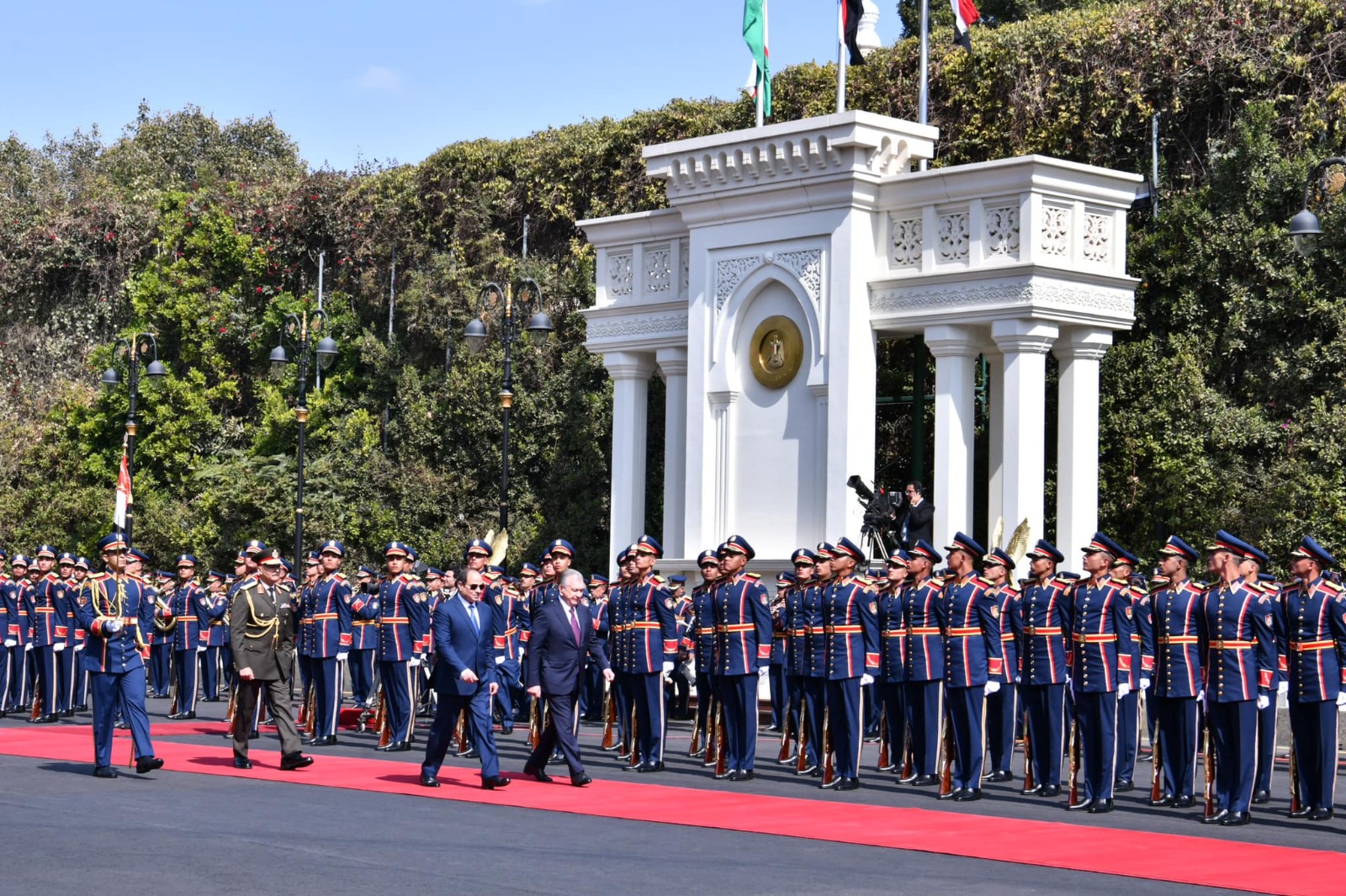 استقبل الرئيس عبد الفتاح السيسي، اليوم، في قصر الاتحادية، الرئيس شوكت ميرضياييف، رئيس جمهورية أوزبكستان، حيث أقيمت مراسم الاستقبال الرسمي وتم استعراض حرس الشرف وعزف السلامين الوطنيين.