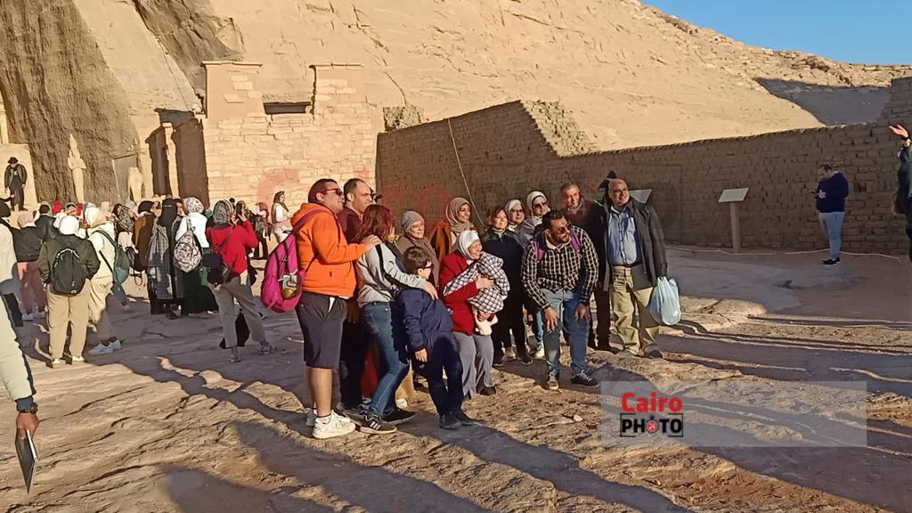 بحضور 6300 سائح وزائر.. الشمس تتعامد على وجه الملك رمسيس الثاني بمدينة أبو سمبل | صور