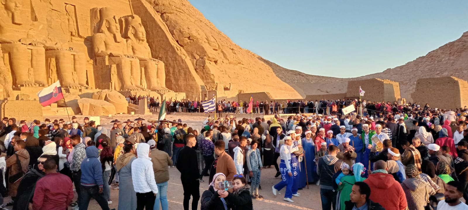 عروض فلكلورية لفرق مهرجان أسوان في تعامد الشمس على قدس الأقداس