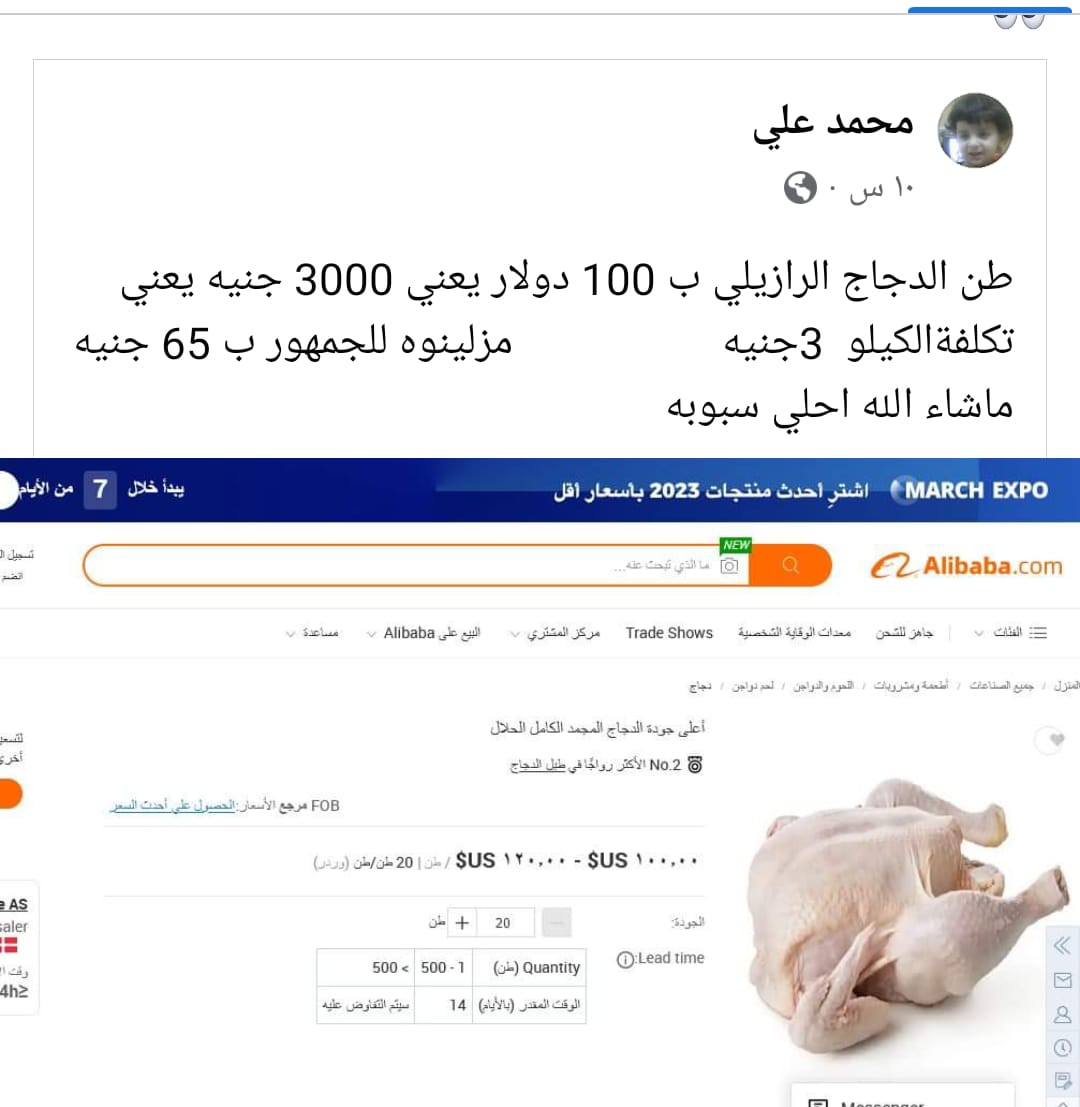ونشر عدد من المواطنين أسعار الدواجن المجمدة بدون أحشاء، على السوشيال ميديا بأنها بسعر 3 جنيهات للكيلو على منصة علي بابا للتجارة العالمية.