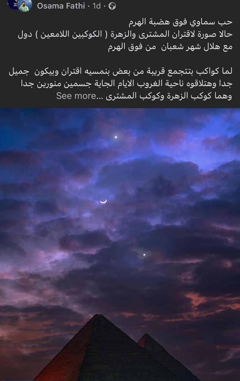 ويذكر أن بعض الناس رصدت تلك الظاهرة في سماء مصر اليوم بعد غروب الشمس، وتم التقاط صور لها، فوق سماء الأهرامات اليوم.