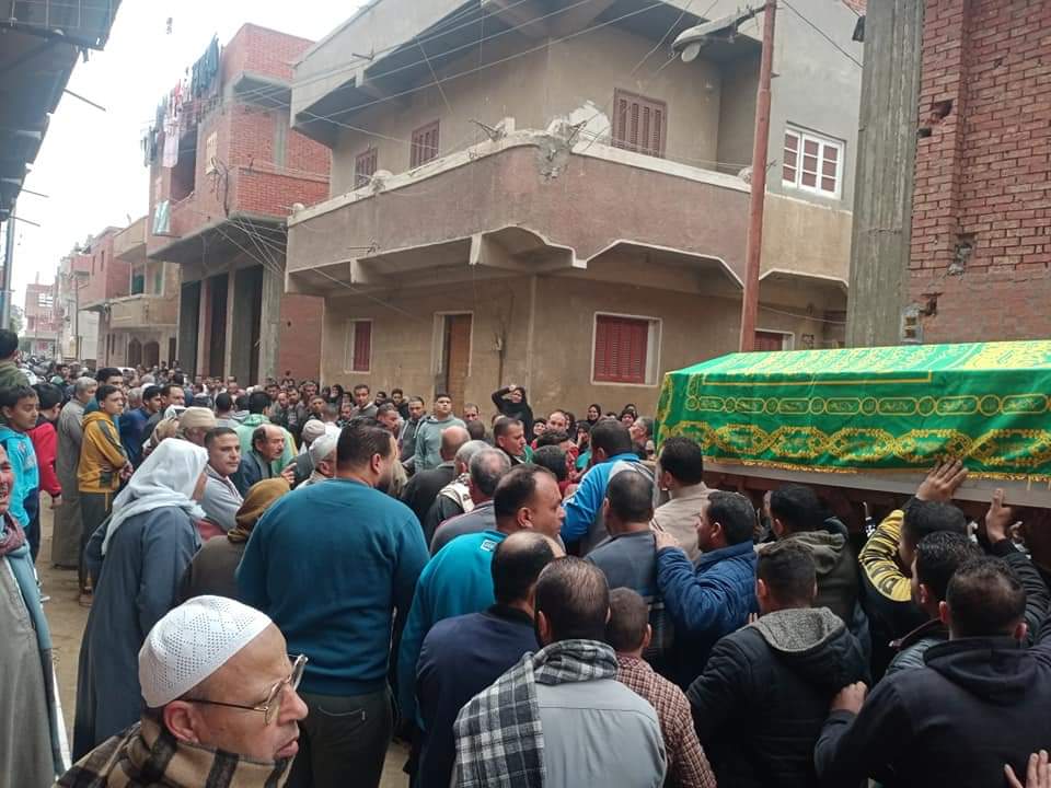 وأدى المئات من أهالي القرية صلاة الجنازة على الزوجين بمسجد القرية، اليوم الجمعة، وسط انهيار وبكاء أسر الضحايا حتى وصولهم إلى مقابر الأسرة، وتم دفنهم وسط حالة من الحزن الشديد على وجوه أهالي القرية.