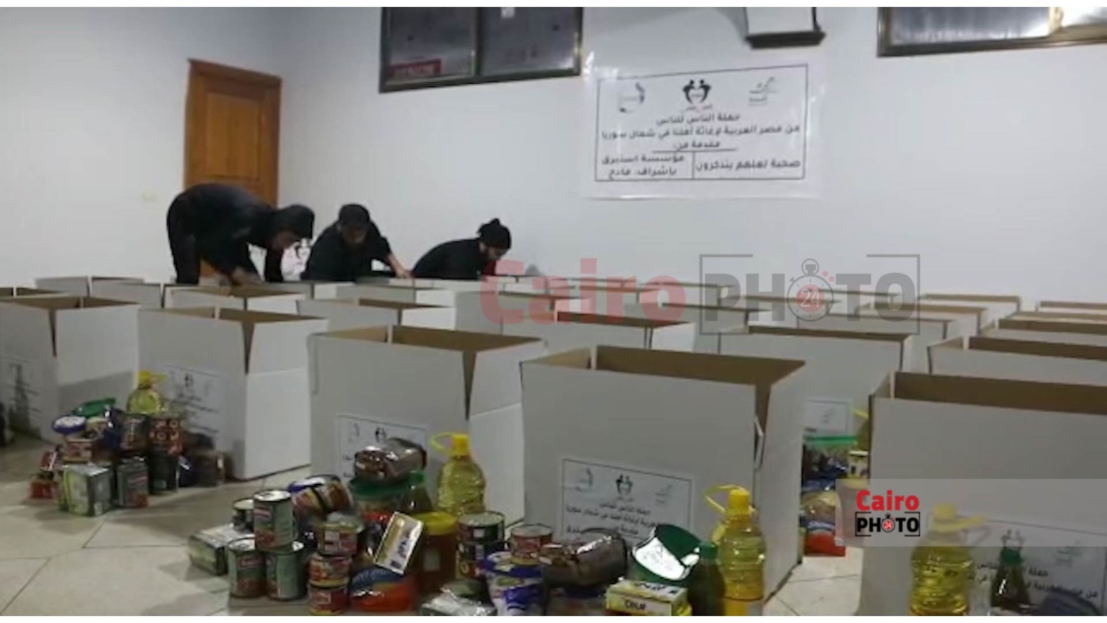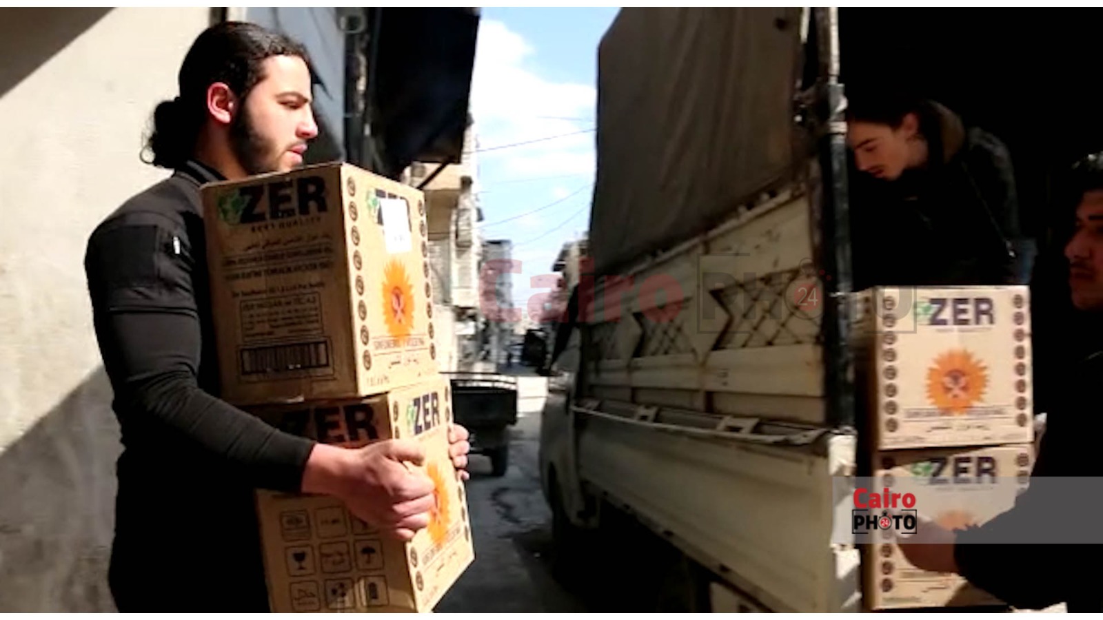 شباب مصريون يقدمون مساعدات غذائية لمتضرري الزلزال في الشمال السوري