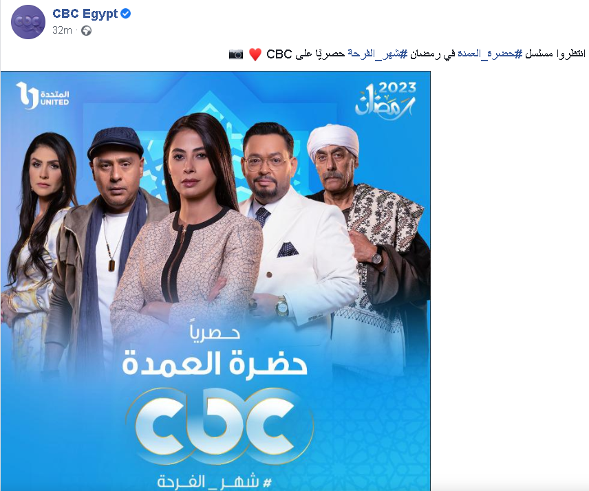 كشفت قناة CBC عن البوستر الدعائي لـ مسلسل حضرة العمدة بطولة الفنانة روبي، والذي من المقرر عرضه عبر شاشتها خلال الموسم الرمضاني 2023.