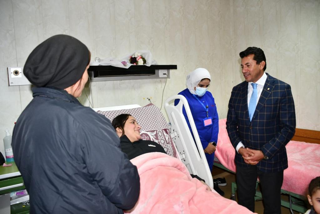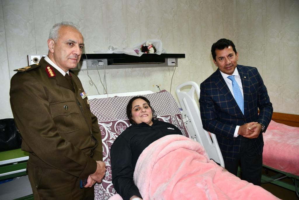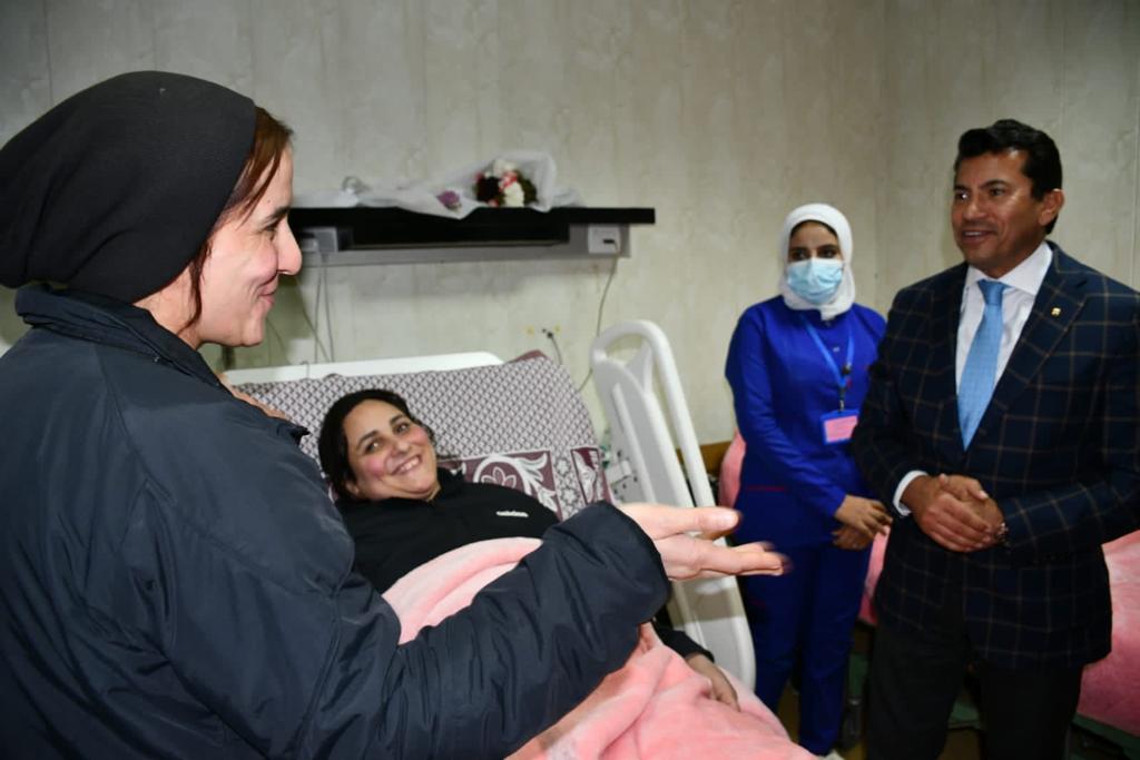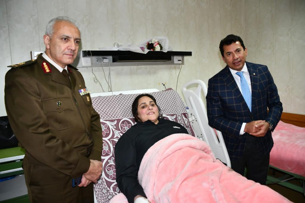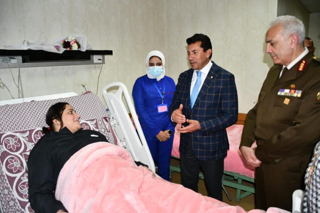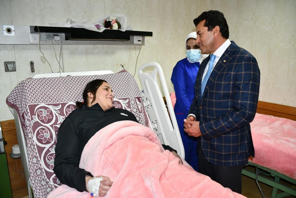وزير الرياضة يزور بطلة رفع الأثقال نهلة رمضان في المستشفى