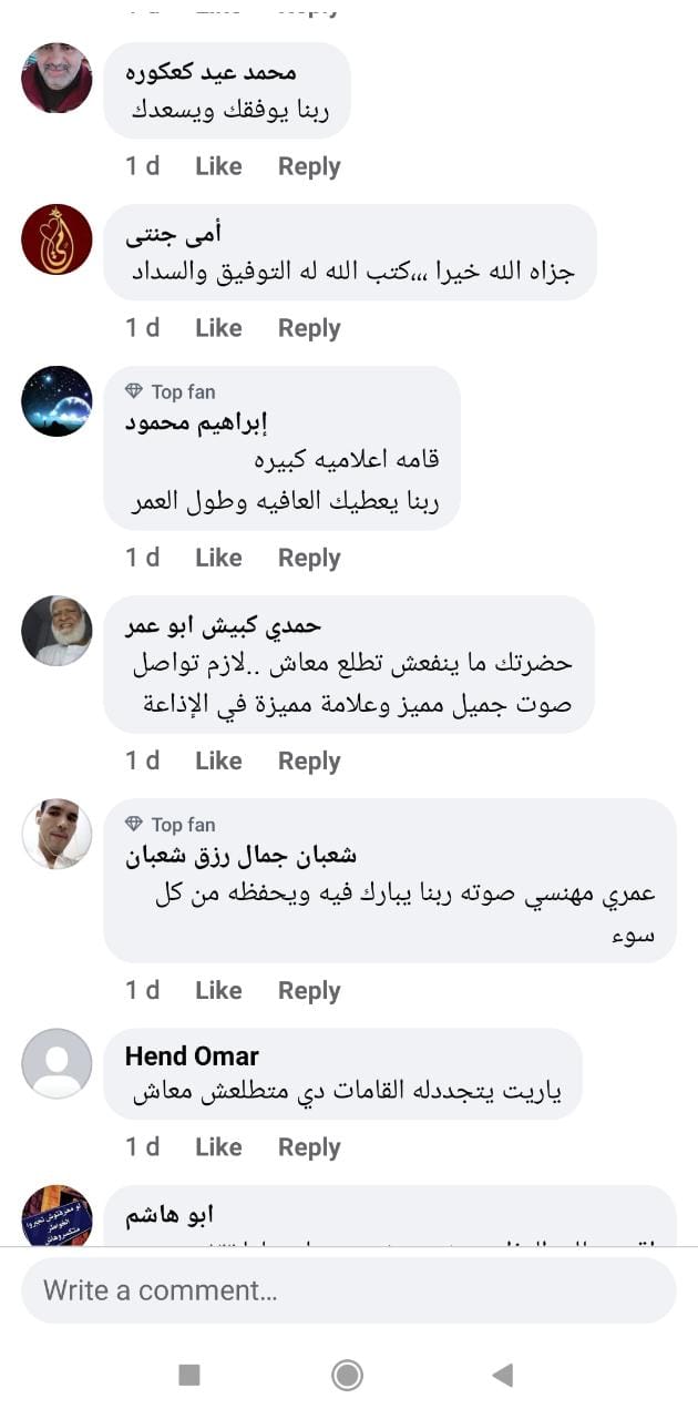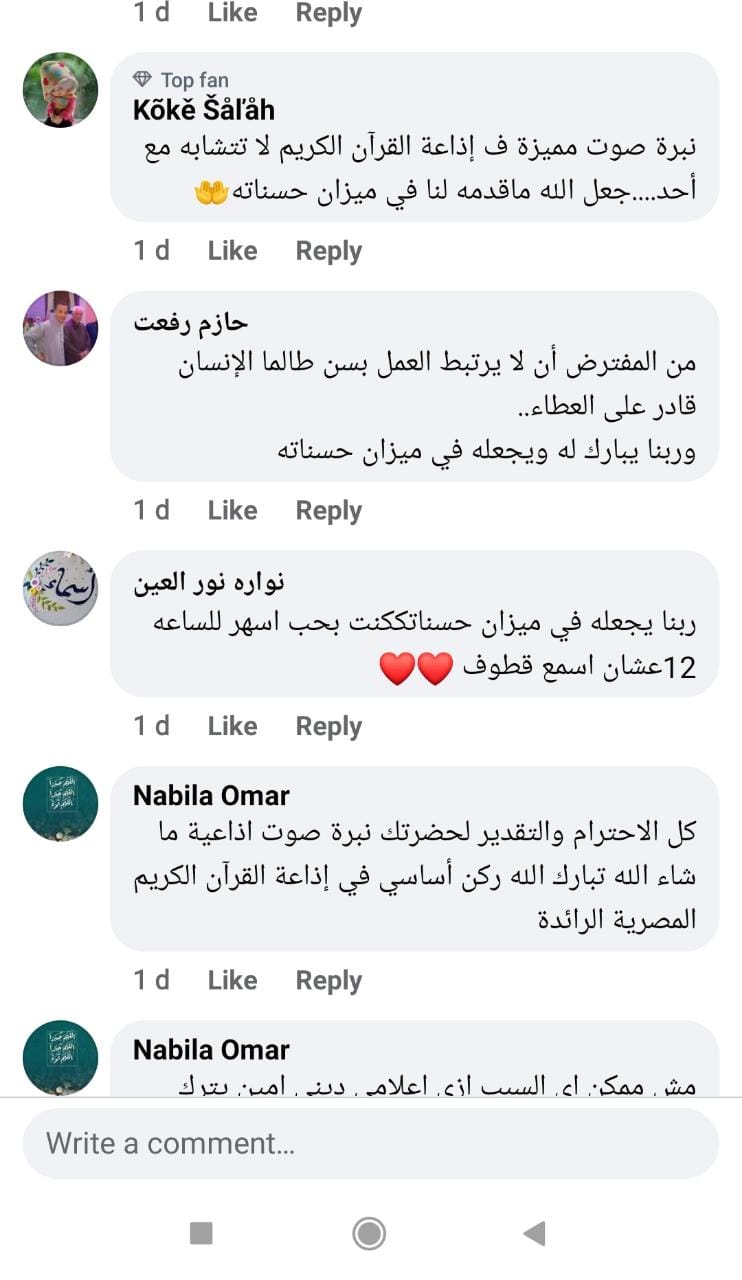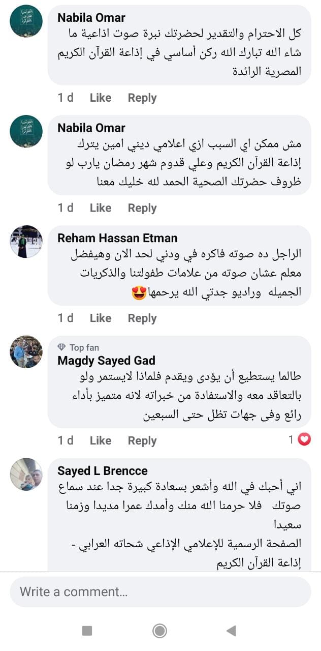 وخلال الساعات الماضية، طالب محبوه وأصدقاؤه إضافة إلى عدد كبير من رواد مواقع التواصل الاجتماعي بالمد له، كونه أحد الأصوات البارزة في إذاعة القرآن الكريم ولارتباطهم بهذا الصوت المتفرد، كما عبروا عن ارتباطهم به من خلال مظاهرة حب على السوشيال ميديا.