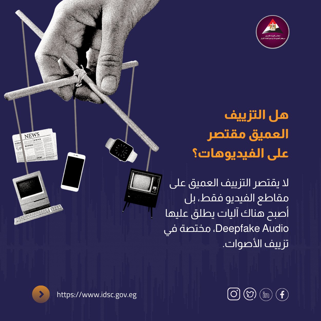 وأوصى المركز عبر صفحته على فيس بوك، بعدم تصديق كل ما تراه العين في ظل وجود تقنية التزييف العميق والتي تقومُ على صنعِ فيديوهات مزيّفة عبر برامج الحاسوب من خِلال استبدال ملامح الشخص المتحدث في الفيديو أو استبدال الصوت بصوت شخص آخر، من أجلِ إنتاج مقطع فيديو جديد قد يبدو للوهلة الأولى أنه حقيقي لكنّه في واقع الأمر مُزيّف.