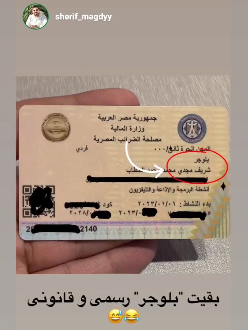 أعلن عدد من البلوجرز عبر حساباتهم الشخصية بموقع تبادل الصور والفيديوهات إنستجرام، خلال الأيام القليلة الماضية، استخراج تصاريح مزاولة مهنة الإنفلونسر أو البلوجر، والاعتراف بهم رسميًا من قبل مصلحة الضرائب المصرية.