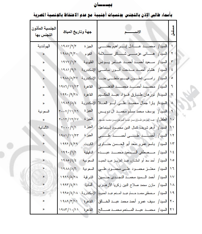 إسقاط الجنسية المصرية عن 21 مواطنًا للسماح لهم بالتجنس بجنسيات أجنبية | مستند