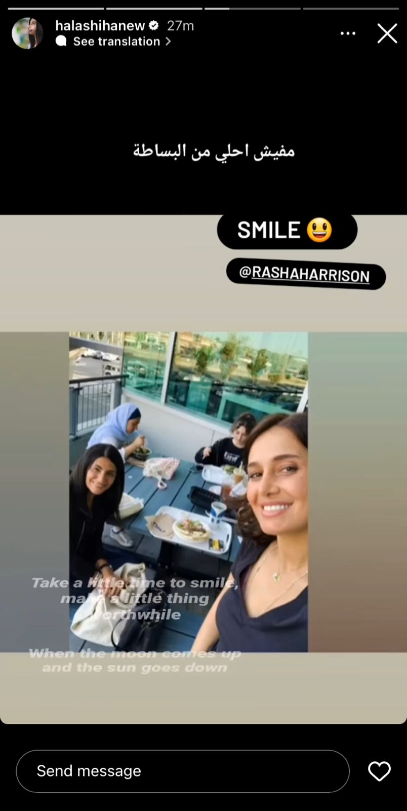 ونشرت حلا شيحة، الصور عبر خاصية ستورى على حسابها الشخصي بموقع تبادل الصور والفيديوهات انستجرام، وعلقت قائلة: اضحك.. مفيش أحلى من البساطة.