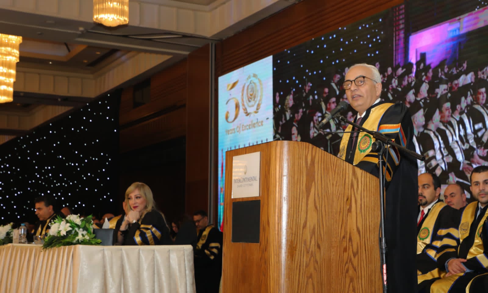 وفى بداية كلمته، أعرب الدكتور رضا حجازى عن سعادته بالمشاركة في هذا الحفل، مشيرًا إلى أن الأكاديمية العربية للعلوم والتكنولوجيا والنقل البحري استطاعت على مدار ما يقرب من خمسين عامًا أن تواكب الإيقاع العالمي السريع في مجالات التعليم والتدريب والبحث العلمي، وأن تفيض على الآلاف من خريجيها سنويًا بالمعارف والعلوم الحديثة والتكنولوجيا المتقدمة في شتى المجالات الحديثة، فقد حققت الأكاديمية تطورًا عظيمًا منذ نشأتها لتصبح إحدى المنظمات المتخصصة، وبيت الخبرة رفيع المستوى التابع لجامعة الدول العربية، وقد اعتمدت في ذلك على بناء جسور من التعاون، مع أرقى الجامعات والمراكز البحثية على مستوى العالم، مما جعل من خريجيها خير سفير لمصر.