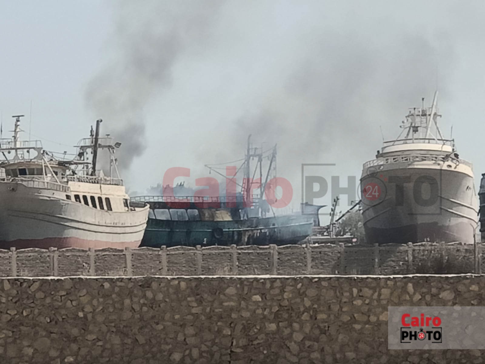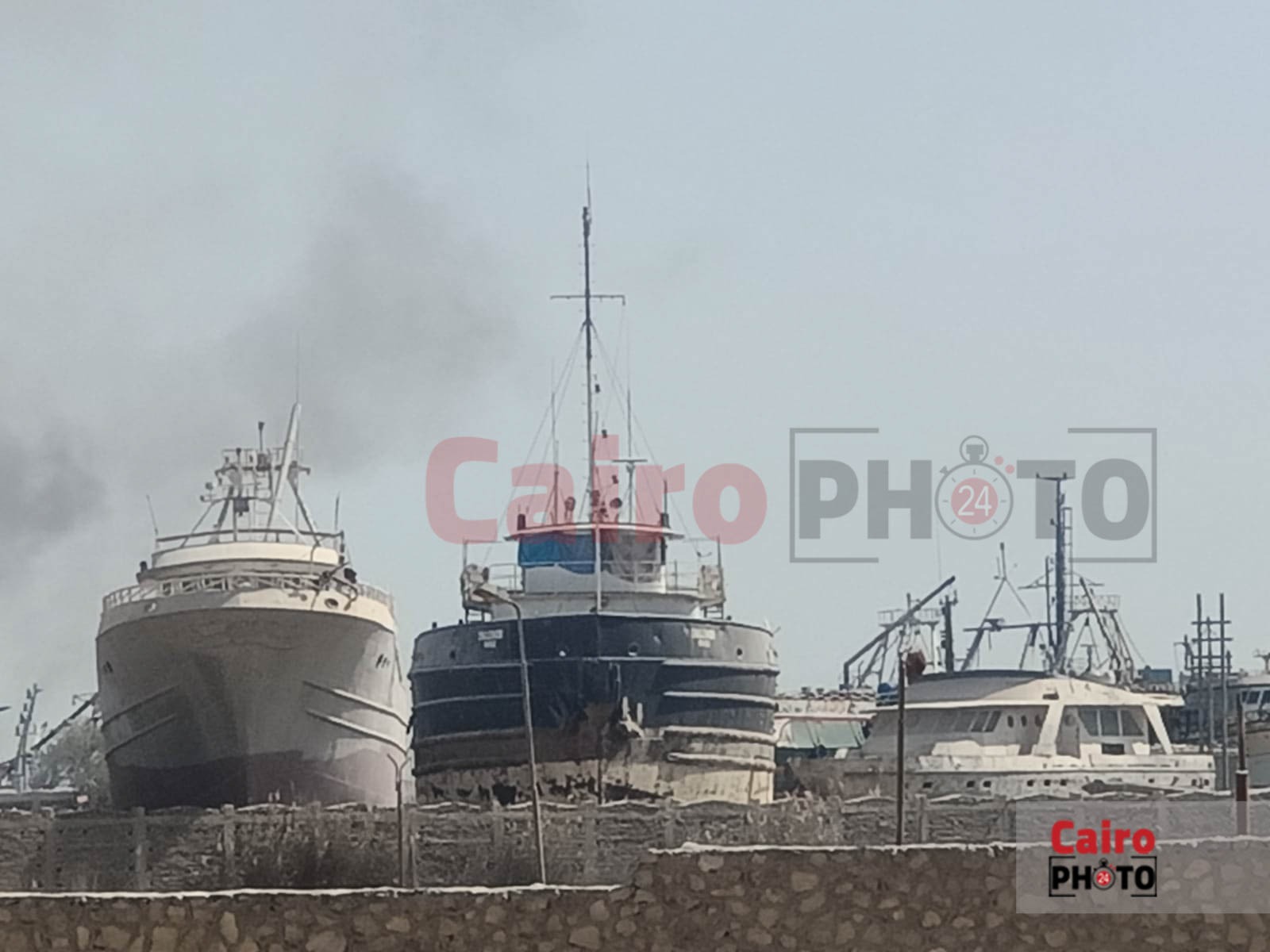 السيطرة على حريق نشب في ميناء الأتكة بالسويس| صور