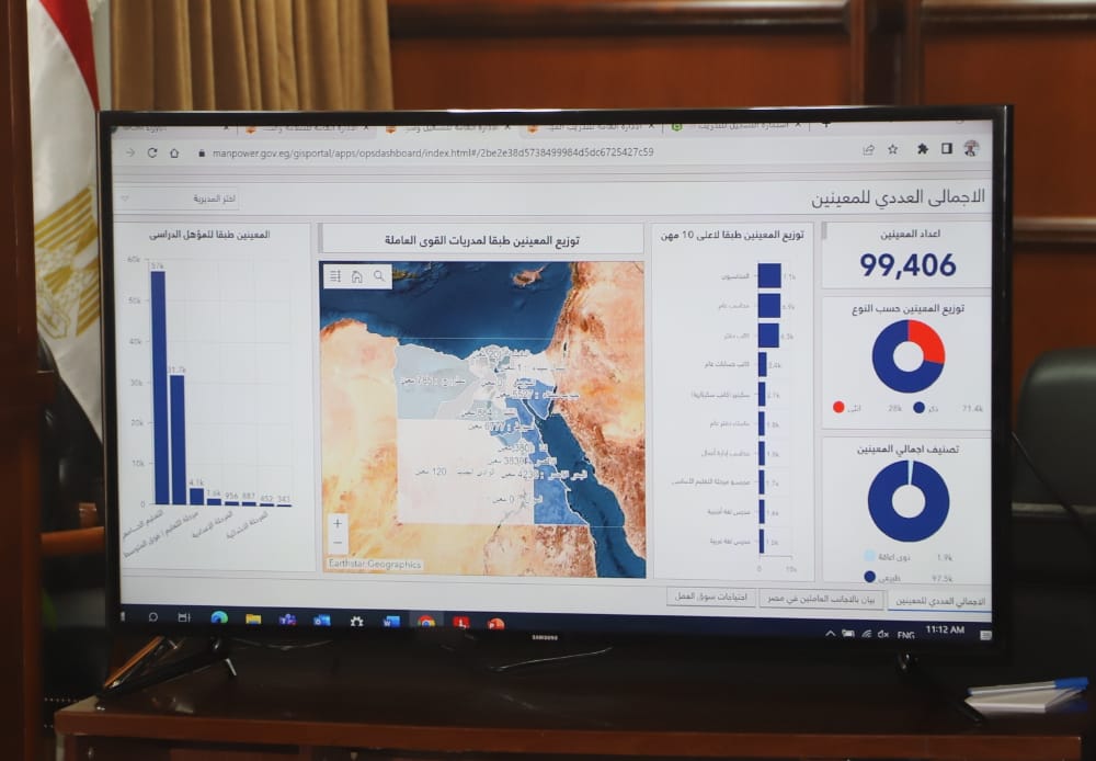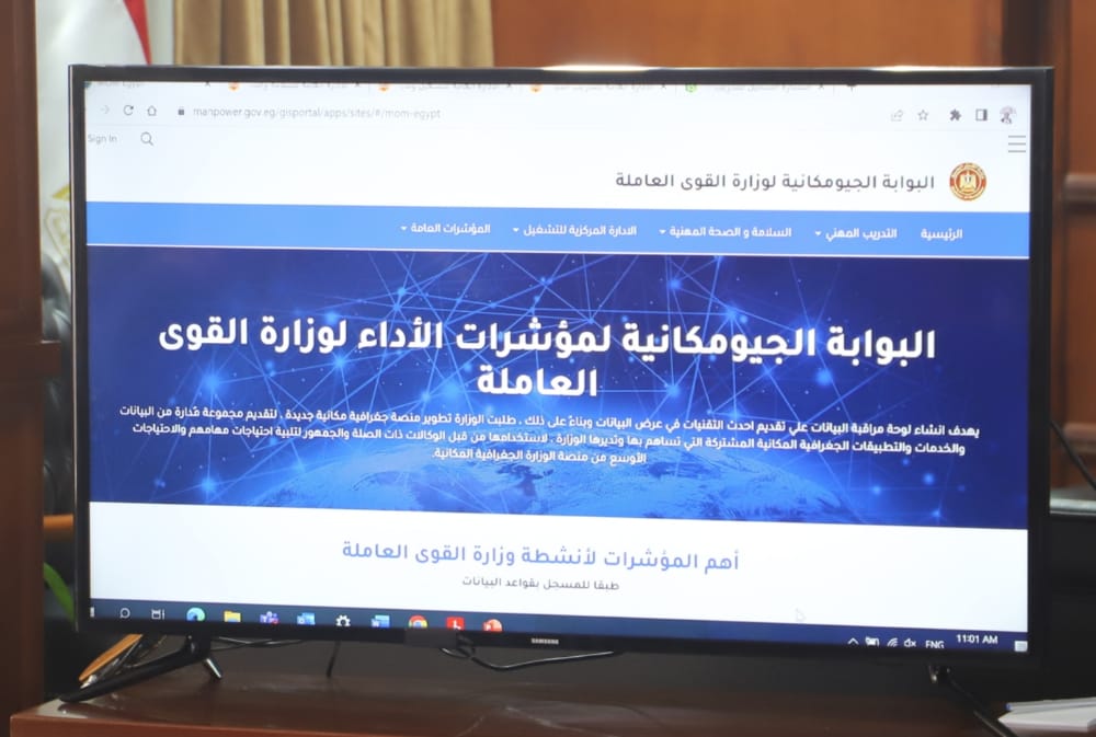 وأوضح البيان أن البوابة الجيومكانية المعلوماتية لمؤشرات أداء وزارة القوى العاملة GIS، يجري تجهيزها، بالتعاون مع برنامج الأغذية العالمي WFP، في إطار مذكرة التفاهم الموقعة بين الوزارة والبرنامج لتعزيز سبل تنفيذ الوزارة لاستراتيجية التنمية المستدامة، ورؤية مصر 2030، وبهدف تعزيز الانظمة الحالية لتكنولوجيا المعلومات، ونشر المعرفة لتوفير معلومات دقيقة وحديثة لكل خدمات ومشروعات الوزارة.