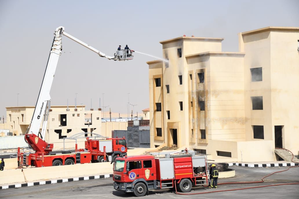 كما تم استخدام المنصة الإطفائية في التعامل مع الحريق وهي من أحدث المعدات الهيدروليكية الثقيلة للتعامل مع بلاغات الحريق والإنقاذ بالأماكن المرتفعة حتى 55م من سطح الأرض، حيث تستطيع المنصة الإطفائية عمل مناورات والوصول للأماكن شديدة الصعوبة وتحديد الأشخاص المحتجزة من خلال وجود كاميرات حرارية تمكن مستخدم المعدة بتحديد الأشخاص المحتجزة داخل النيران بتقنية الـــ ZOOM ومكافحة الحرائق واستخدام الوسائط الإطفائية المختلفة من مياه بأشكالها والمادة الرغوية في عمليات الإطفاء للحرائق.