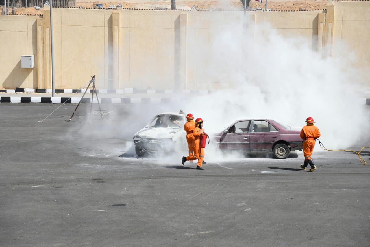 وتضمن العرض كذلك بيانا لحريق المادة البترولية تضمن السيطرة على الحريق بواسطة سيارة إطفاء متعددة الأغراض بالطاقم المستعد عليها للتعامل مع مثل هذه الحالات.