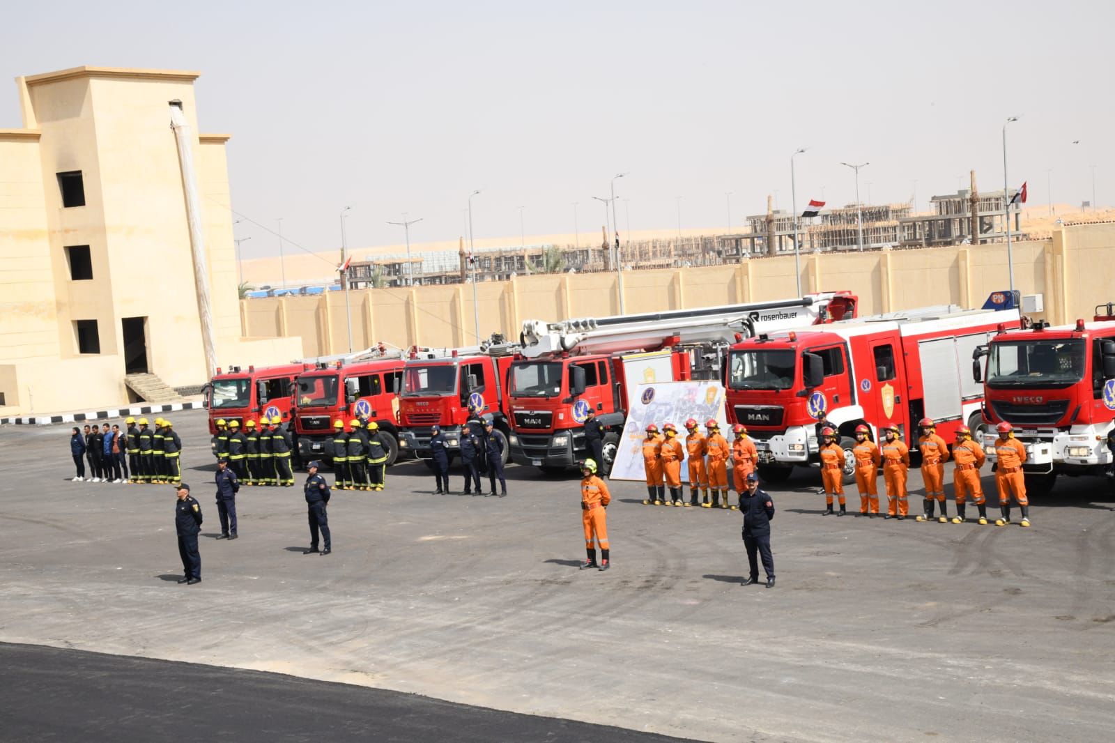 واختتم الاحتفال بعرض لرجال الحماية بميدان التدريب تضمن عرض لرجال المفرقعات والإطفاء والإنقاذ النهري، بمشاركة متميزة للعنصر النسائي في عمليات الاطفاء، وتضمن العرض التعامل مع بيان حريق داخل عقار سكنى مكون من 3 طوابق ووجود أشخاص محتجزين ومصابين أعلى وداخل العقار، وتضمن البيان إخطار الجهات المعاونة من طوارئ الغاز والكهرباء ومرفق سيارة الإسعاف والهلال الأحمر كلًا فيما يخصه عن طريق غرفة التحكم والسيطرة للطوارئ، وذلك وفقًا لإجراءات التنسيق الدائمة والمستديمة مع مؤسسات الدولة المعنية وهيئات المجتمع المدني.