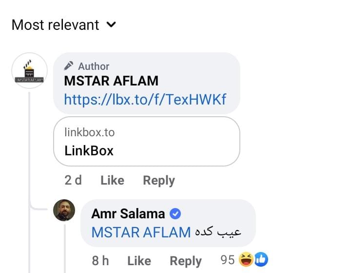 وكتب عمرو سلامة، تعليقا عبر أحد صفحات مواقع التواصل الاجتماعي، التي سربت الفيلم قائلا: عيب كده.
