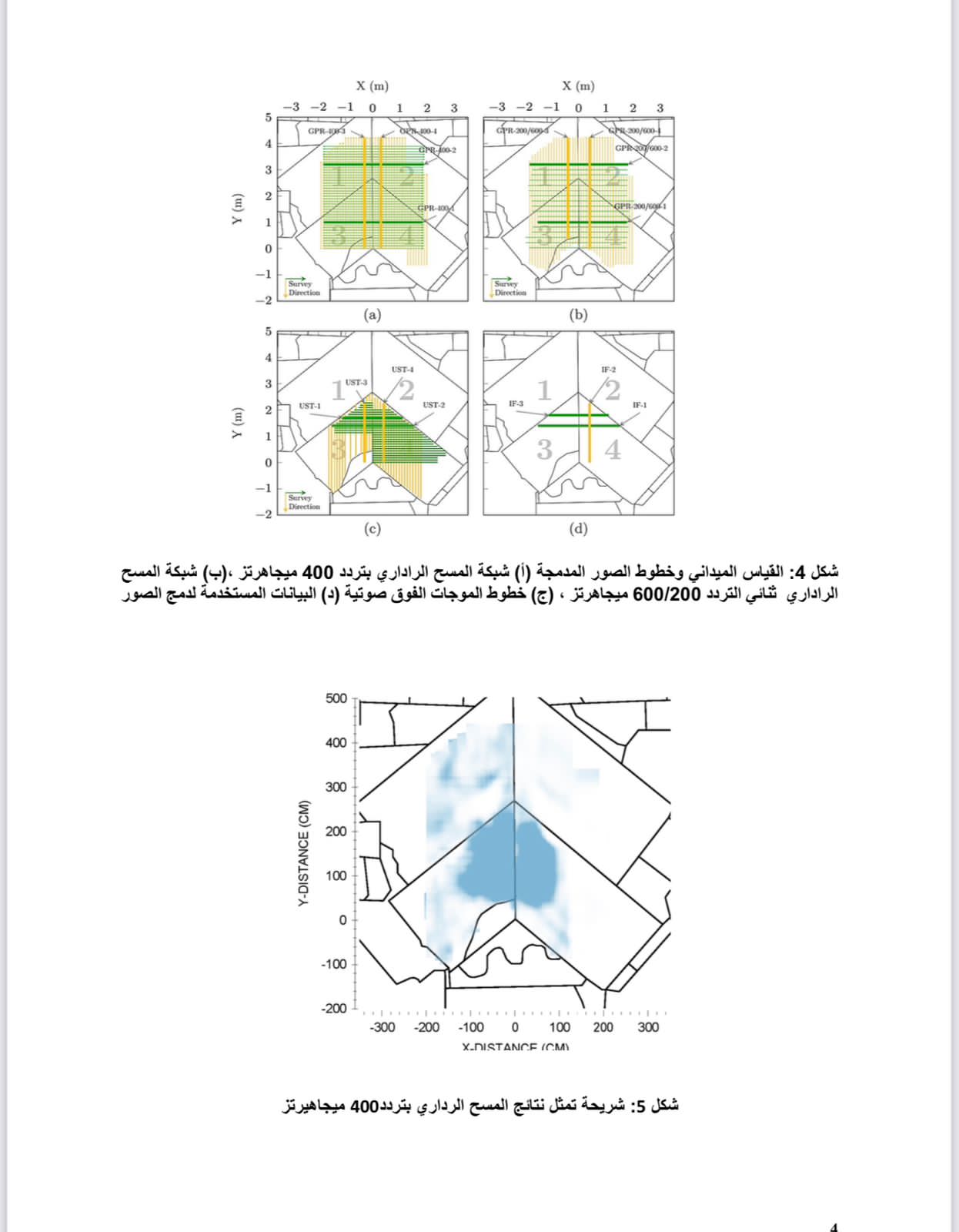 وأفاد بأن هذا الفراغ عبارة عن ممر أفقي ويبلغ طوله التقريبي 9.5 متر ويقع خلف جمالون المدخل الشمالي مباشرة، مضيفًا أن النتائج أظهرت وجود منطقة من الانعكاسات القوية في النصف السفلي للجمالون وحدود الفراغ وموقعه النسبي.