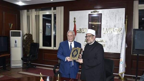 وفي ختام اللقاء، أهدى وزير الأوقاف نسخة من كتاب الله عز وجل وموسوعة الثقافة الإسلامية إلى المستشار مصطفى محمد ألهم محافظ الأقصر.