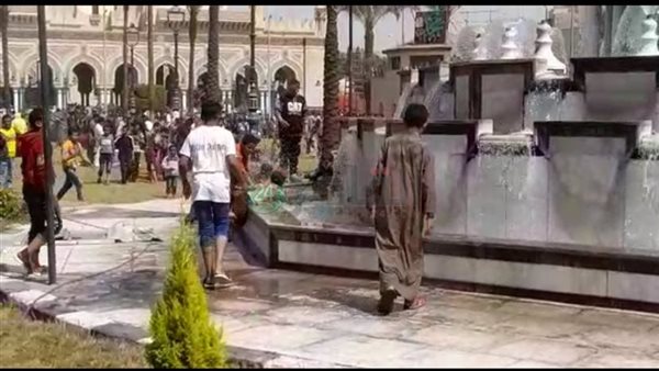 وأثار المشهد استياء الكثير من المترددين على المسجد لأداء صلاة الجمعة، بالتزامن مع الاحتفال بمولد سيدي عبدالرحيم القنائي، وطالبوا مسؤولي مديرية الأوقاف وإدارة المسجد بالتدخل، حفاظًا على الشكل الحضاري للمسجد، ومنع الأطفال من الاستحمام واللهو داخل النافورة.