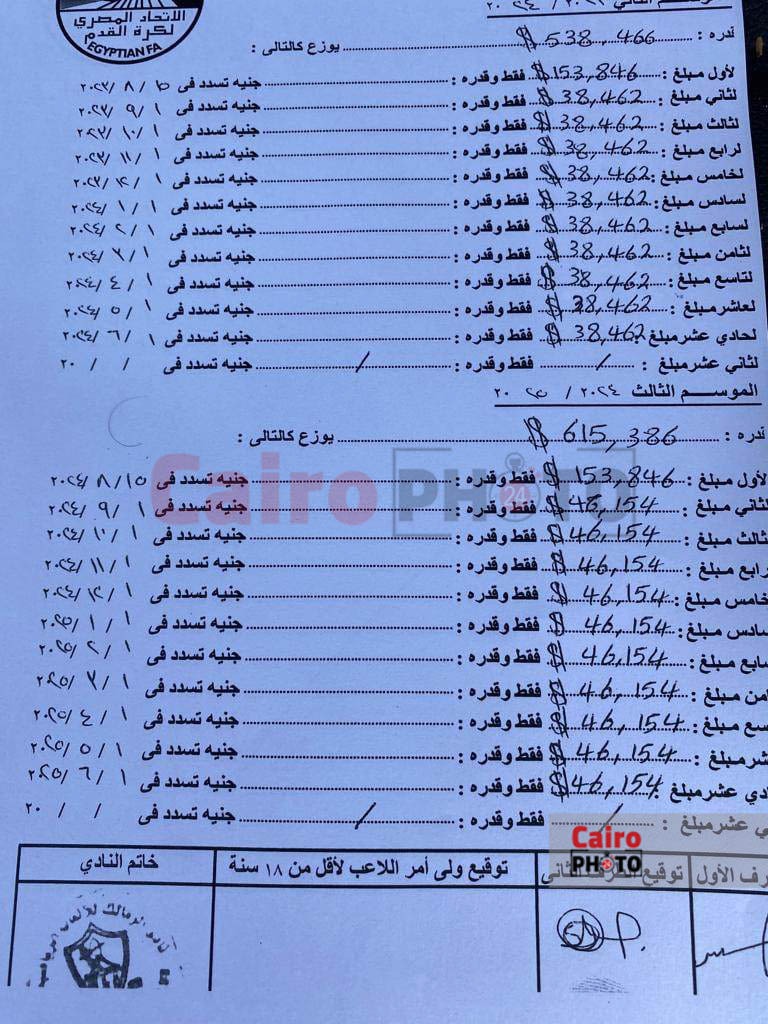 وفي الموسم الثاني من عقد اللاعب يحصل على مبلغ 538 ألفًا و466 دولارًا، ويحصل في القسط الأول على مبلغ 153 ألفًا و846 دولارًا، ثم يحصل على باقي الموسم علي عشرة أقساط كل قسط 38 ألفًا 462 دولارًا.