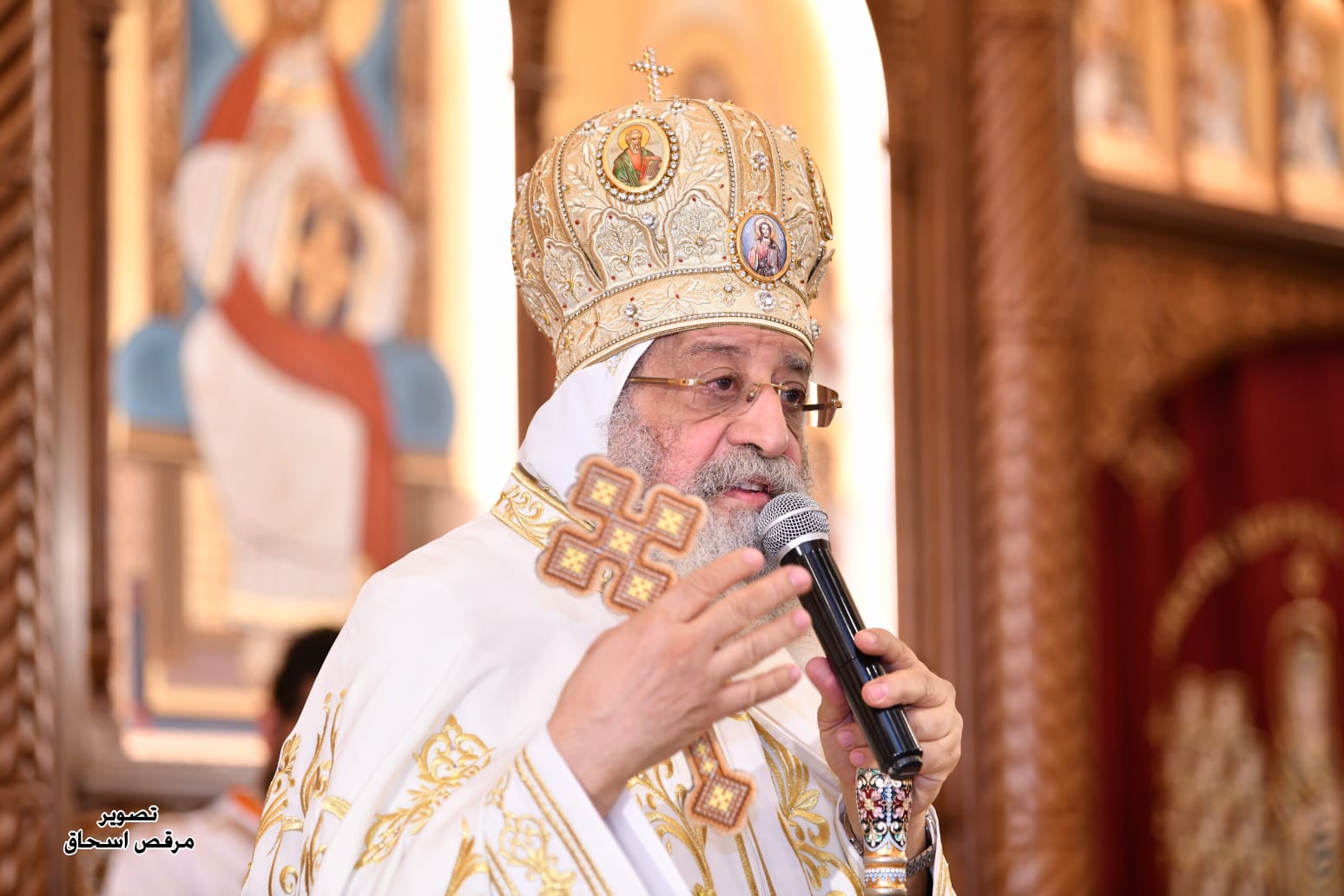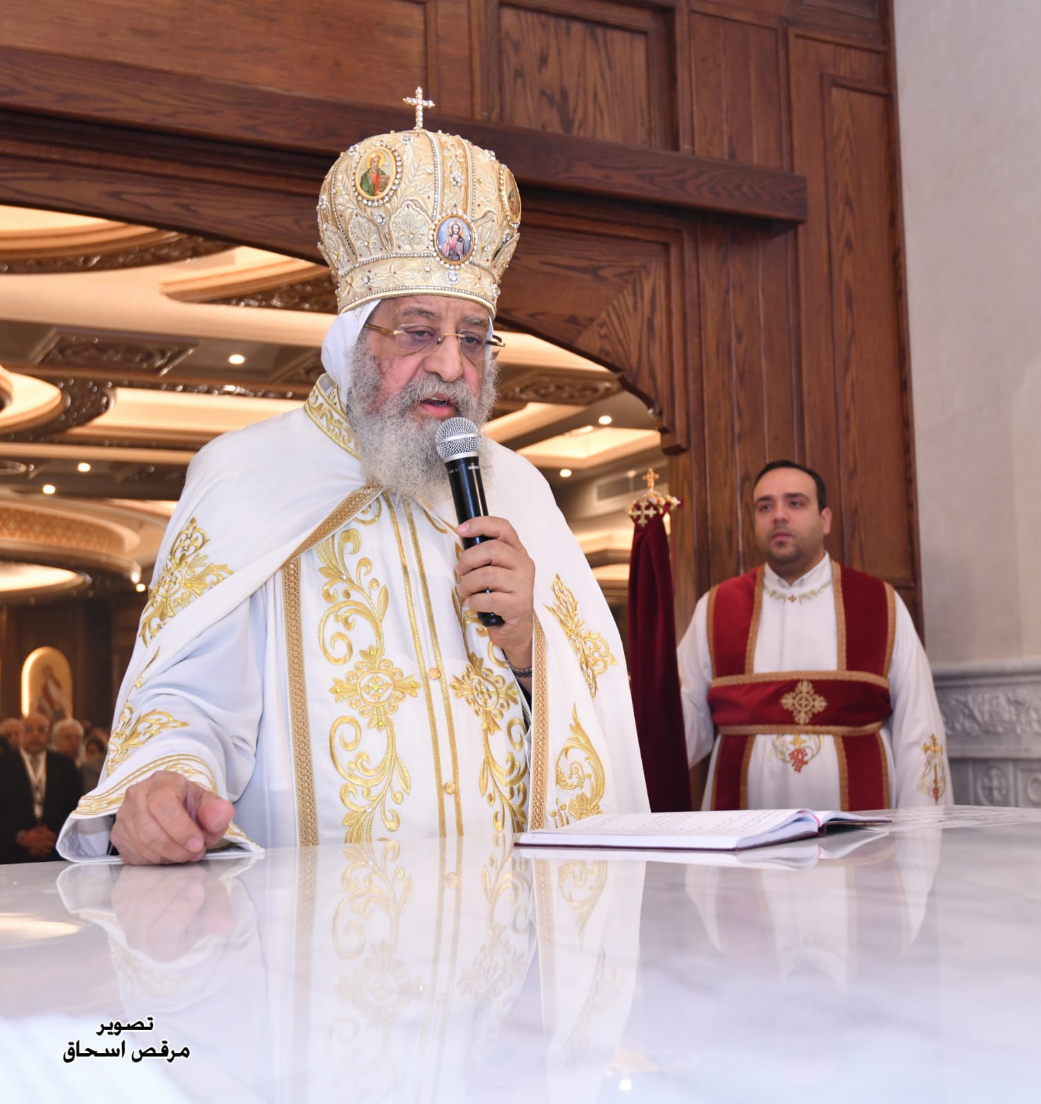 وألقى الأب القمص داود لمعي كاهن كنيسة القديس مارمرقس بمصر الجديدة كلمة شكر خلالها قداسة البابا، مشيرًا إلى أن قداسته يتميز بأنه: