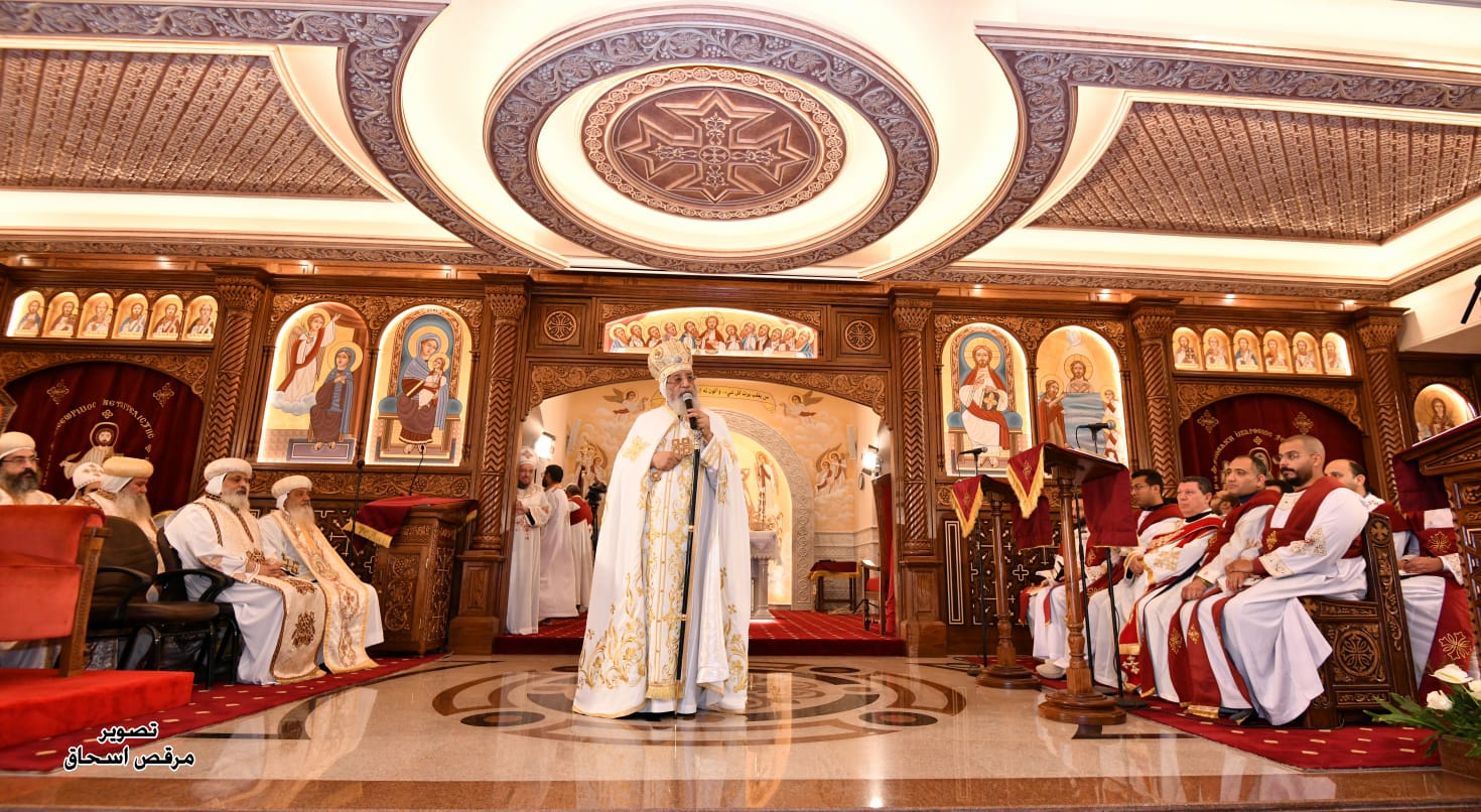 صلى قداسة البابا والآباء المشاركون القداس الإلهي بعد التدشين، وألقى عظة القداس التي تناول خلالها ثلاثة ملامح لحياة القداسة من خلال آحاد الصوم الكبير الثلاث الأولى، وهي: