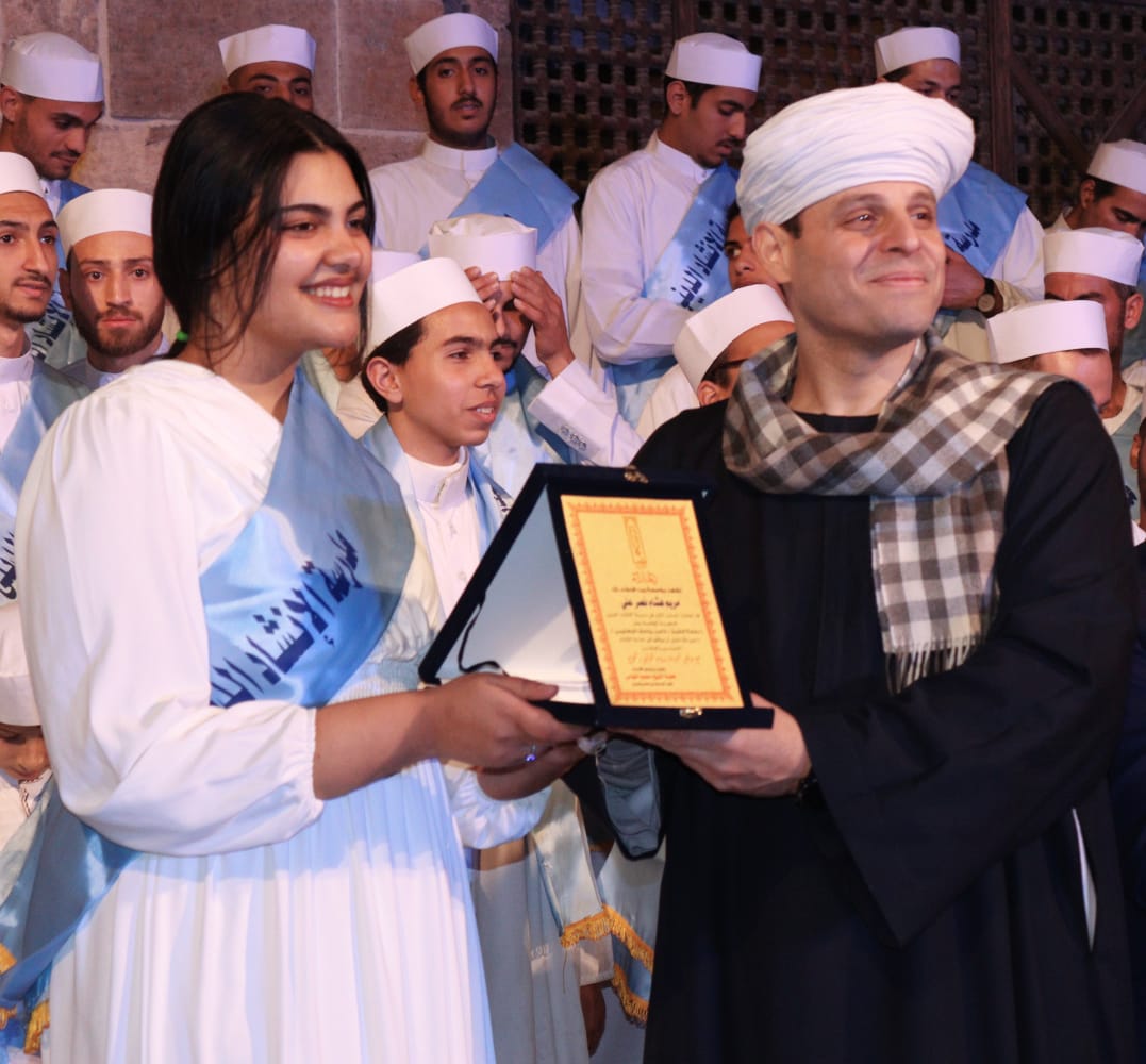 وتضمنت الاحتفالية أداءً لمجموعة متنوعة من القصائد الدينية والتواشيح، تم تقديمها بأسلوب متميز يلامس الوجدان، ويتوافق مع رغبات الجمهور وشغفه بفن الإنشاد، واختتم الشيخ التهامي، الحفل، مع طلاب مدرسة الإنشاد، بابتهال قمر سيدنا النبي.