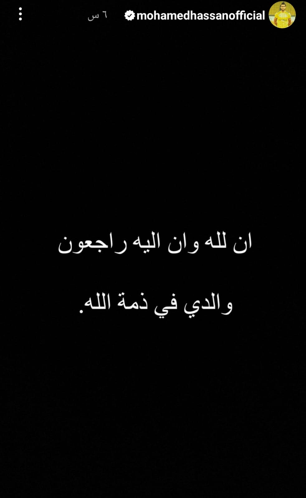 وكتب اللاعب محمد حسن عبر ستوري حسابه الشخصي على إنستجرام: «إنا لله وإنا إليه راجعون.. والدي في ذمة الله».