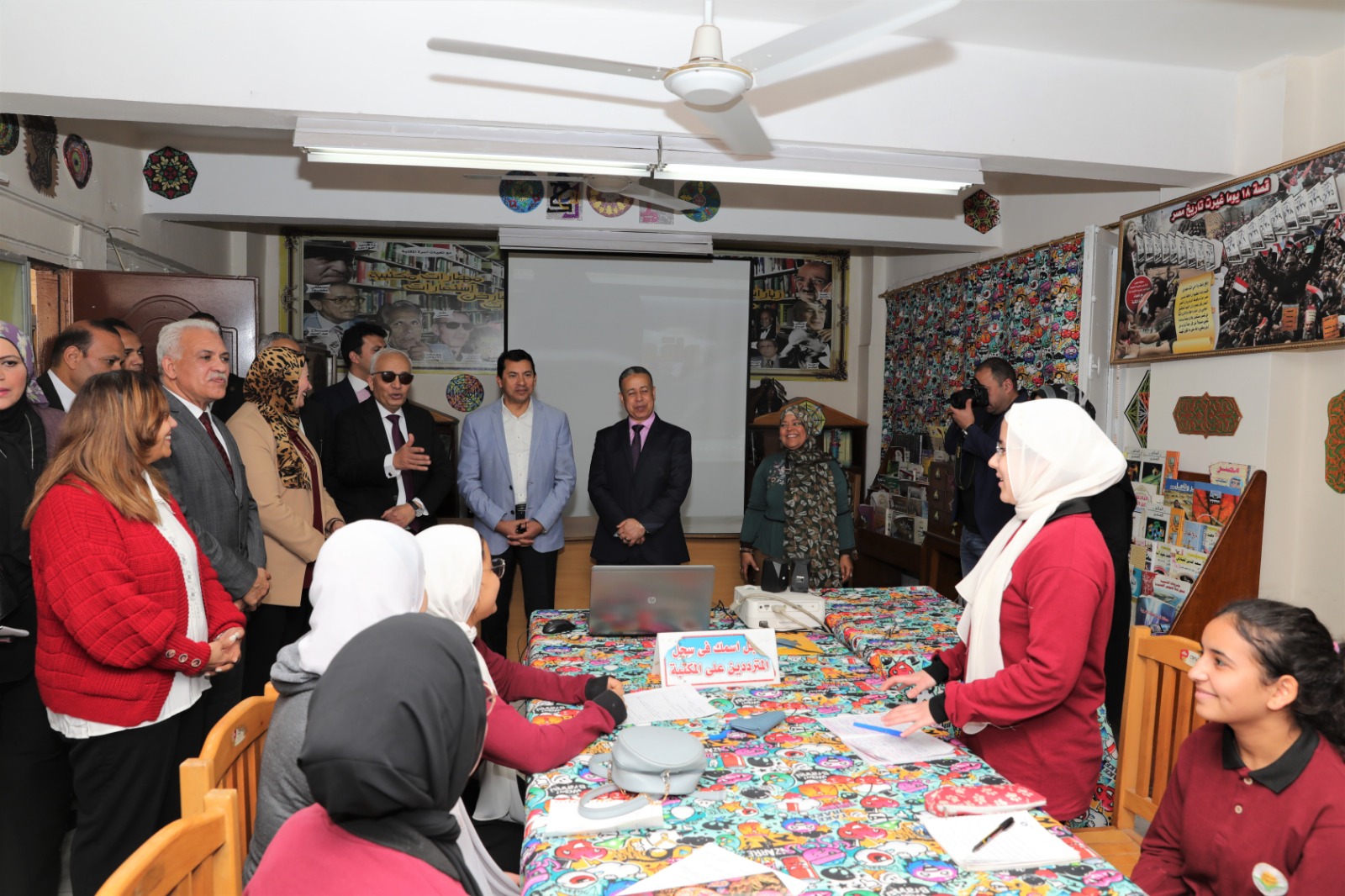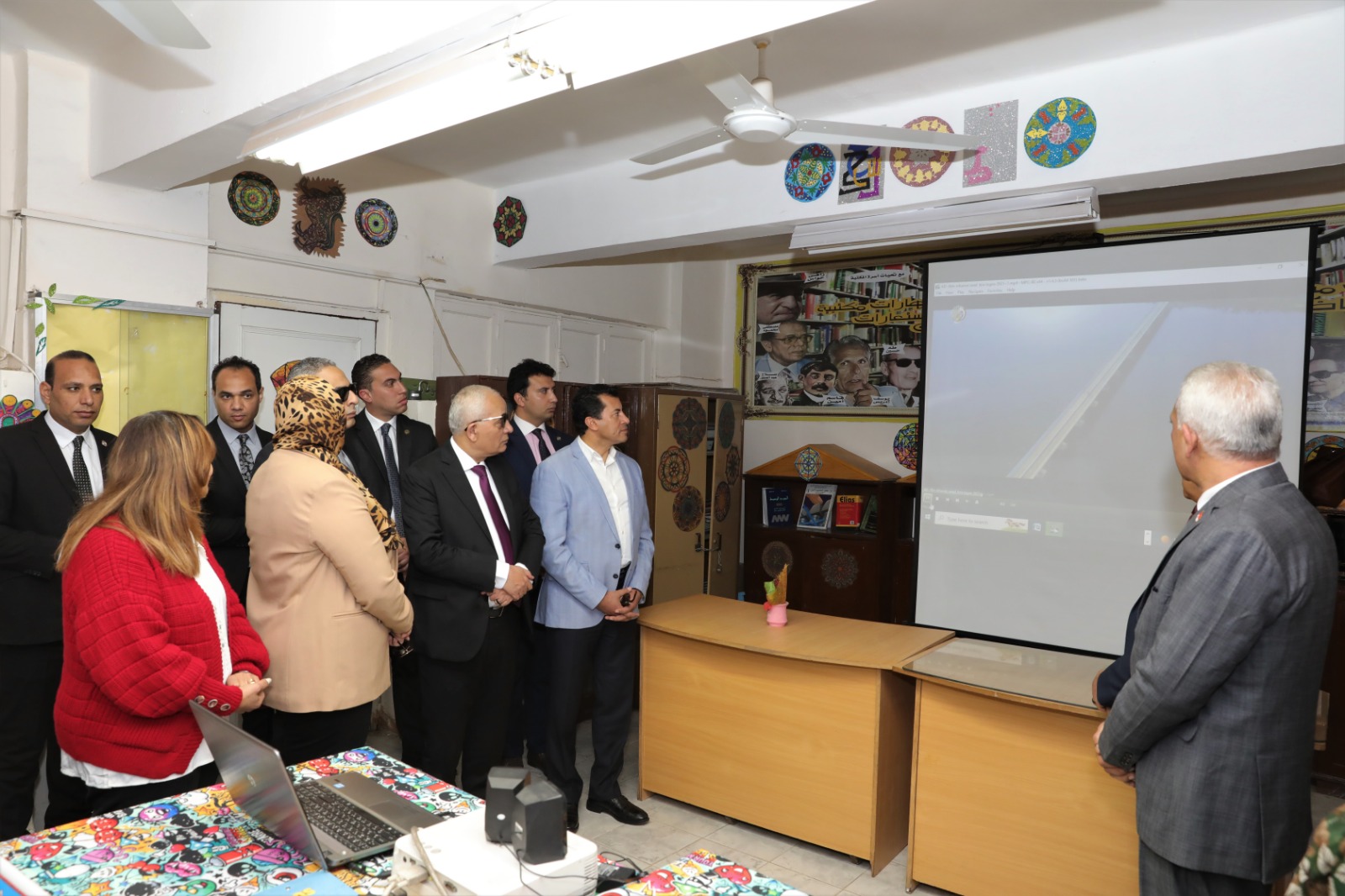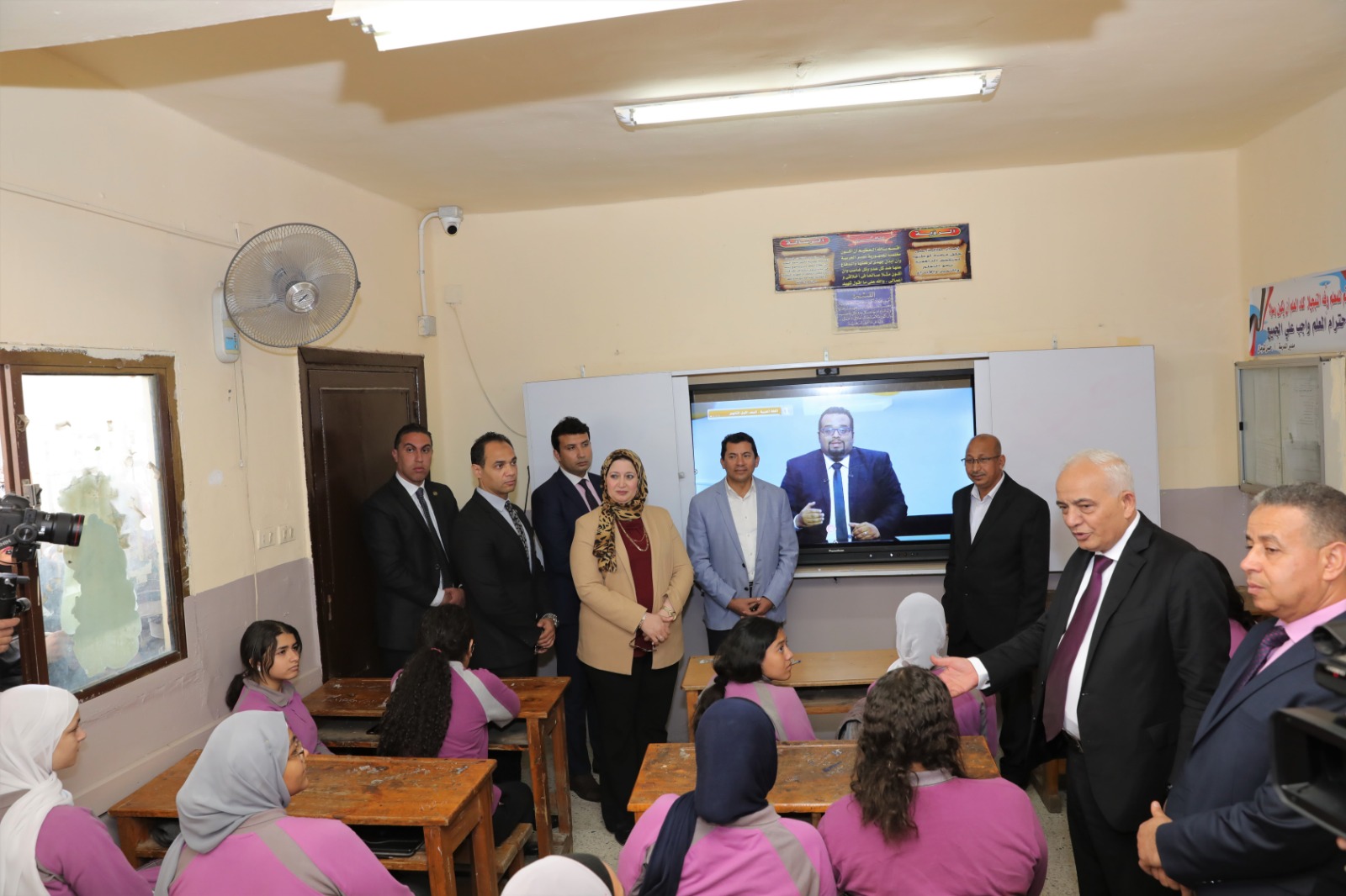 وتفقدا أيضًا عددًا من الفصول أثناء تنفيذ حصص المشاهدة لقنوات مدرستنا، كما تفقدا أحد فصول الصف الأول الإعدادى أثناء شرح مادة اللغة العربية، حيث تحاور وزير التربية والتعليم مع الطالبات عن موضوع الدرس.