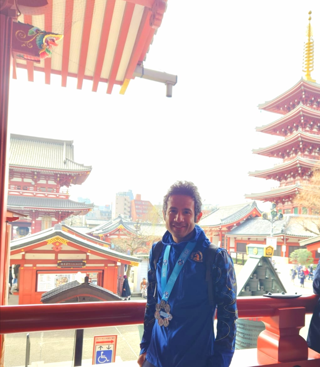 أول مصري يكمل سباقات الماراثون العالمية الستة بطوكيو