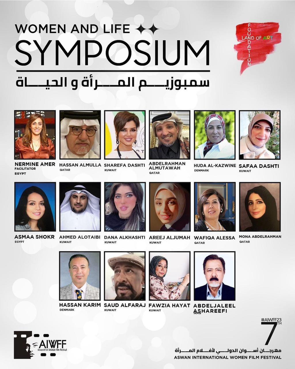 يقام علي هامش فعاليات الدورة السابعة من مهرجان أسوان الدولي لأفلام المرأة سمبوزيوم المرأة والحياة فكرة وتنسيق الإعلامية نرمين عامر، ويشارك بالسمبوزيوم 21 فنانا من 6 دول، وهي الكويت والدنمارك وقطر والعراق ومصر وباكستان.