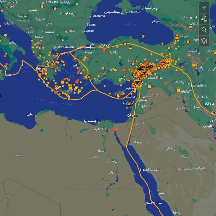 أكد المعهد القومي للبحوث الفلكية، أن زلزال تركيا ليس له تأثير على مصر، ومنطقة جنوب البحر المتوسط، والسبب يرجع إلى أن الخط الأصفر الموجود في الصورة هو خط الفليق بين القارات، والدوائر هي الأماكن النشطة الزلزالية.