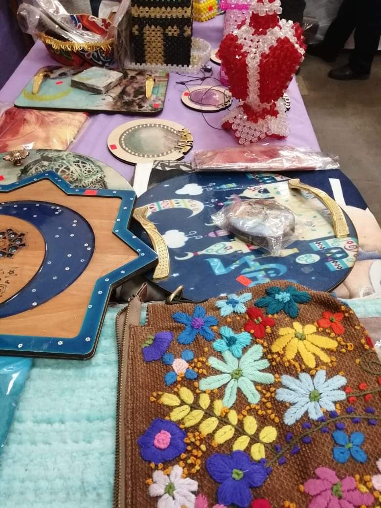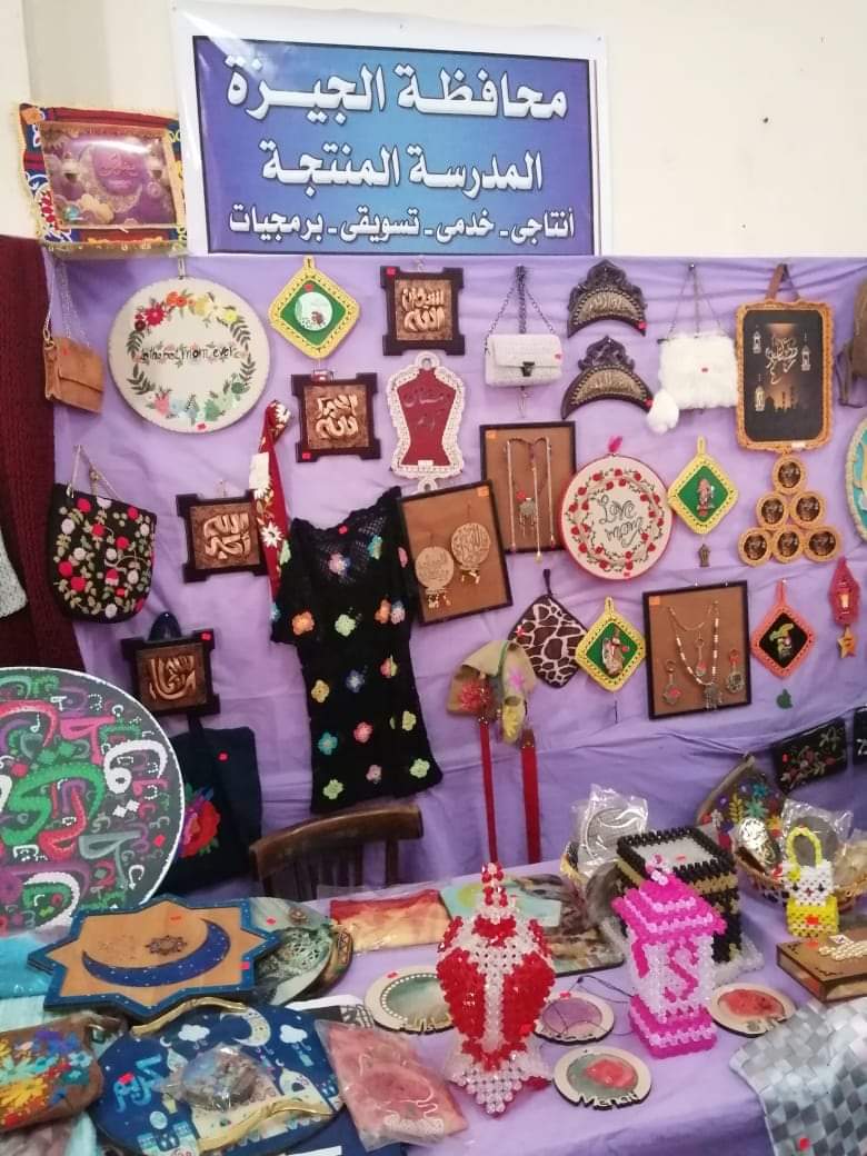 كما قدمت محافظة الجيزة مشغولات خشبية ويدوية متقنه الصنع وإكسسوارات من تصميم وإنتاج الطلاب في مختلف المدارس، متقن الصنع من إنتاج إدارة أوسيم التعليمية.