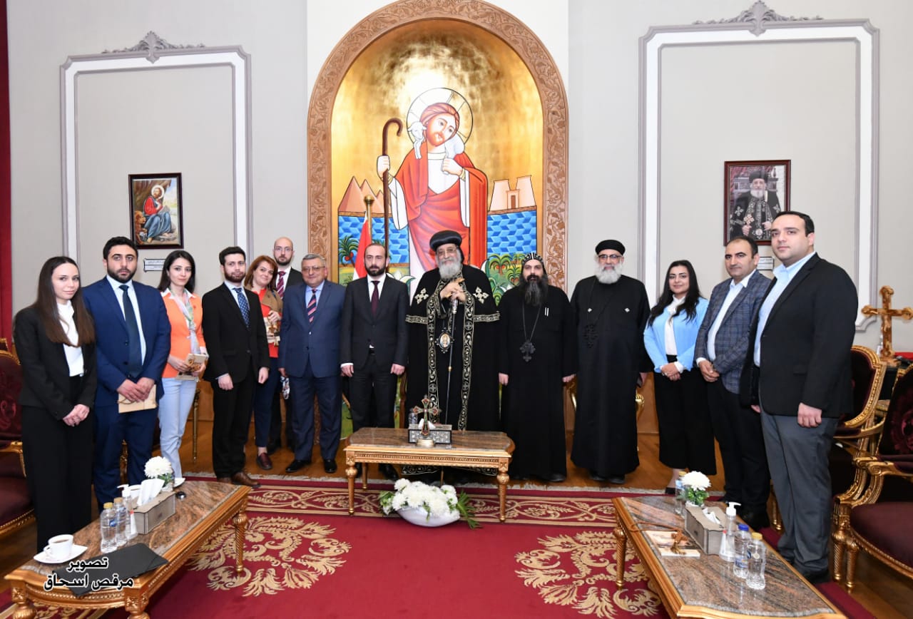 استقبل البابا تواضروس الثاني، بابا الإسكندرية وبطريرك الكرازة المرقسية، في المقر البابوي بالقاهرة اليوم الأربعاء ارارات ميرزويان وزير خارجية جمهورية أرمينيا، والوفد المرافق له وبرفقتهم سفير أرمينيا في القاهرة هراتشيا بولاديان.