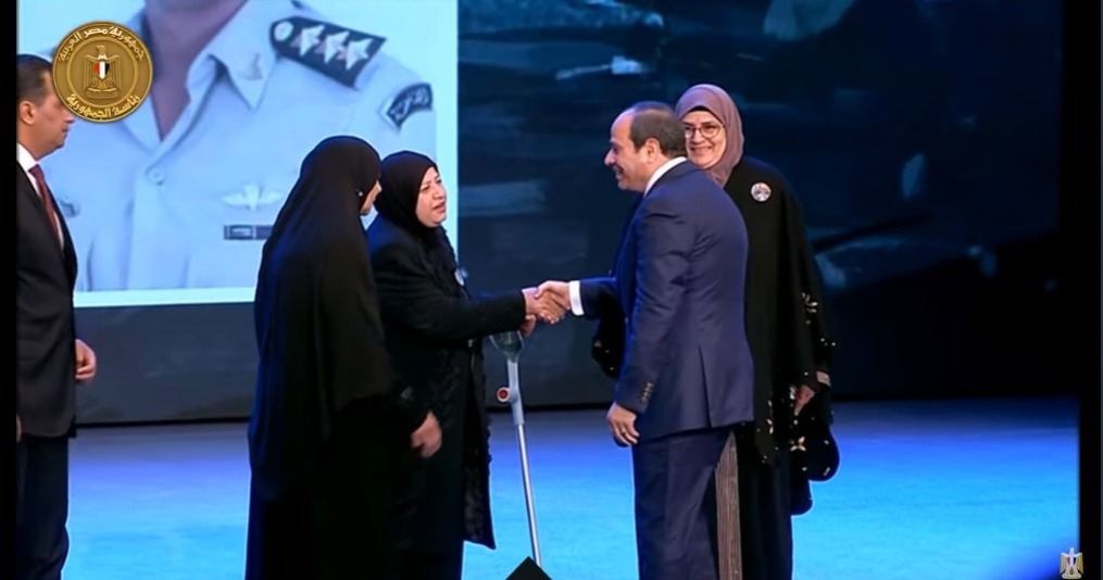 ورحب الرئيس عبد الفتاح السيسي، بأمهات شهداء مثلث القيادة، قائلًا: شرفتونا، أنا عاوز أقولكم حاجة، يمكن من كام سنة كانت الدنيا لسه مش باينة وكل الناس خايفة، ونصحى على عمل كبير ودماء أبنائنا تنزف وأرواح تروح لربنا، دلوقتي تمن ده احنا مش هنقدر نعوضكم عليه، اللي هيعوضكم عليه ربنا، هيعوض أسر الشهداء والأم بالذات.