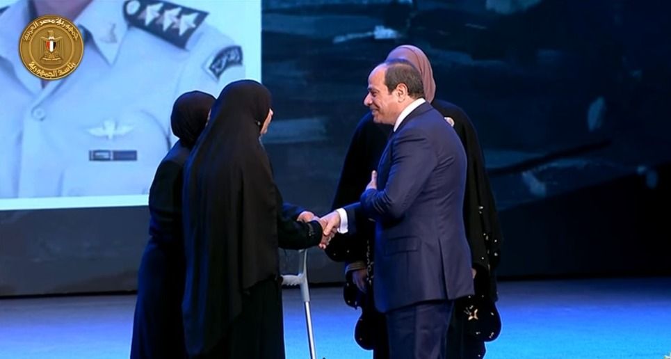 وقال الرئيس السيسي: النهاردة بفضل الله سبحانه وتعالى، التمن ده اللي دفعوا أبنائنا على مدى 8 سنيين، الحمد لله، ليكم وان شاء الله مصر بخير دايمًا، أحنا متشرفين بيكمم وبكلامكم، وتابع: مش بس الجيش اللي فاكر أولادكم لأ ده كل المصريين، مش هننسى كل شهيد وكل مصاب قدم حتة من جسمه عشان تبقى في آمان وسلام.