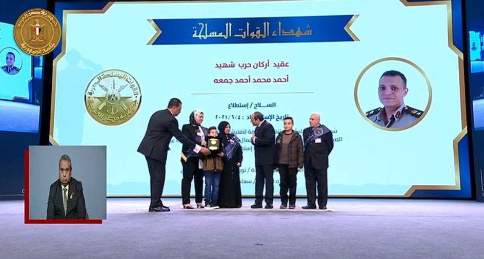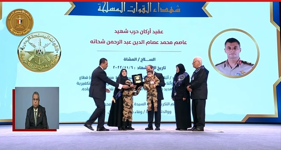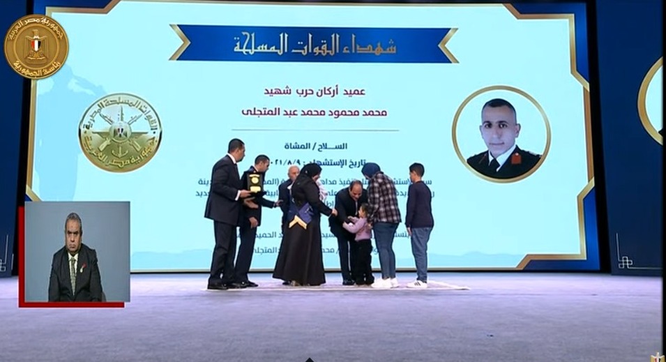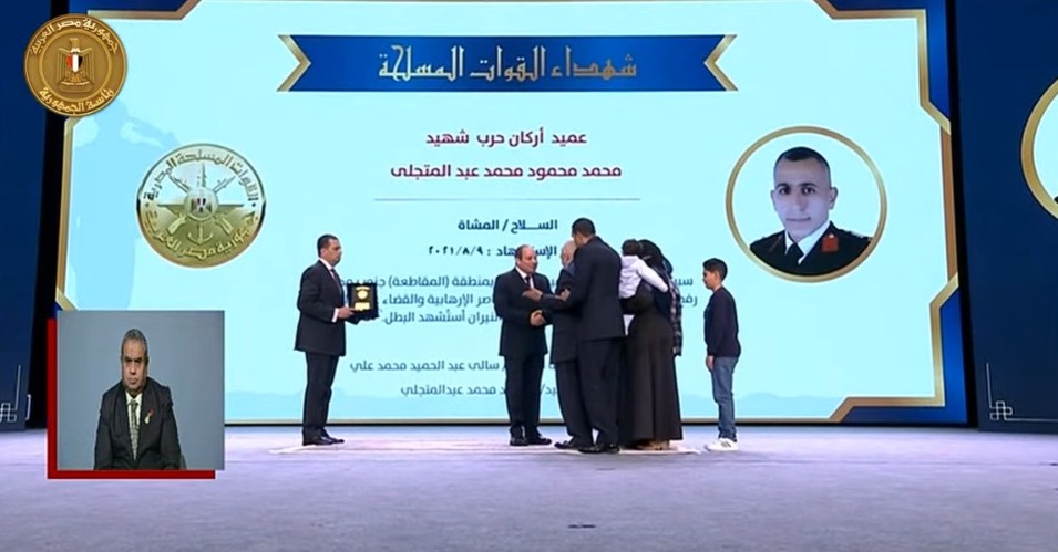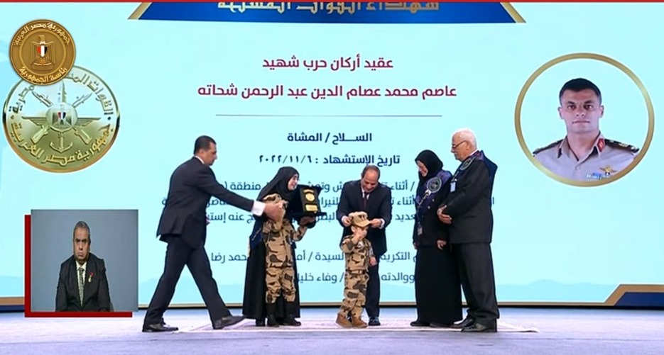 كرّم الرئيس عبد الفتاح السيسي، رئيس الجمهورية، عددًا من أسر الشهداء ومصابي العمليات، على هامش فعاليات الندوة التثقيفية الـ37 للقوات المسلحة.