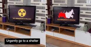 وشاهد المتابعون خريطة لروسيا تتحول تدريجيًا إلى اللون الأحمر من الغرب إلى الشرق، وصوت يقول هناك إضراب اذهب على وجه السرعة إلى ملجأ، أغلقوا المكان، استخدم الأقنعة الواقية من الغازات بجميع أنواعها، في حالة عدم وجود أقنعة الغاز، استخدم ضمادات شاش قطني، بالإضافة إلى أن الشاشات كانت تومض بعلامة تحذير من الإشعاع باللونين الأسود والأصفر.