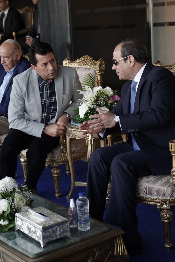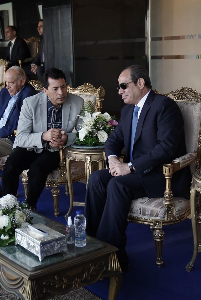 الرئيس السيسي يرحب بـ مؤمن زكريا على هامش المباراة النهائية لـ كابيتانو مصر