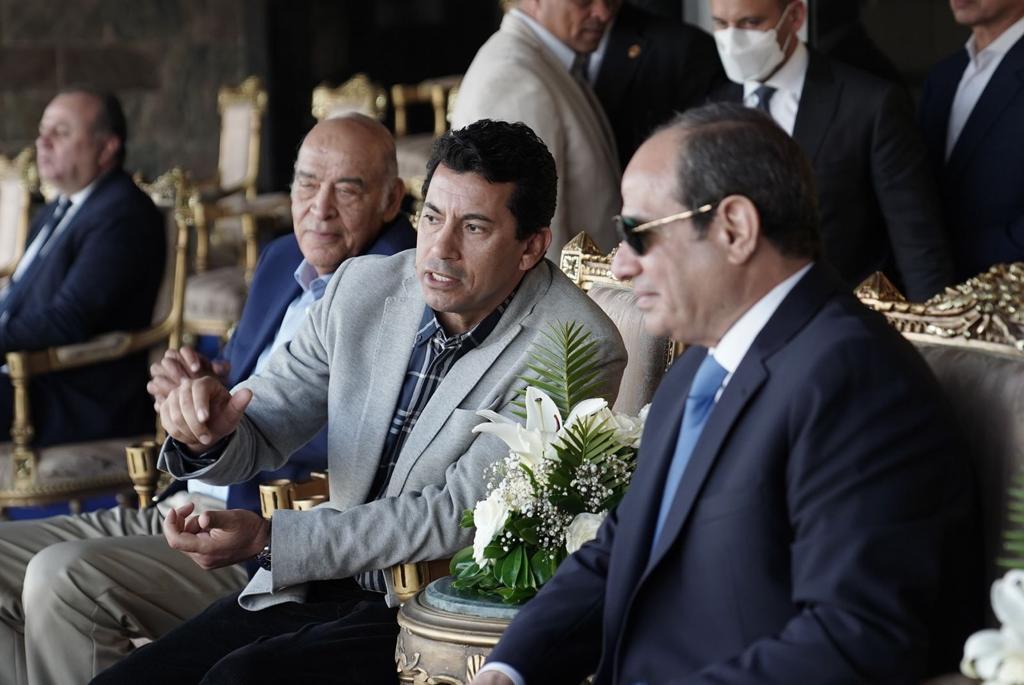 وظهر مؤمن زكريا إلى جوار الرئيس السيسي في المقصورة الرئيسية لملعب الدفاع الجوي، الذي احتضن المباراة النهائية لبطولة كابيتانو مصر.